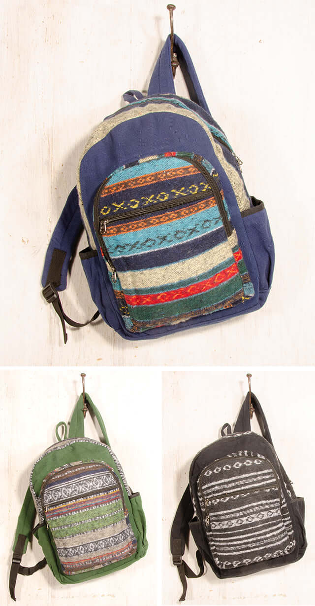 Handmade in Nepal from a sturdy fabric called Gheri, these lovely backpacks have been produced using an age old weaving technique on backstrap looms. As each piece is expertly hand woven colours of the fabric may vary slightly, but you are guaranteed to have a truly unique item.