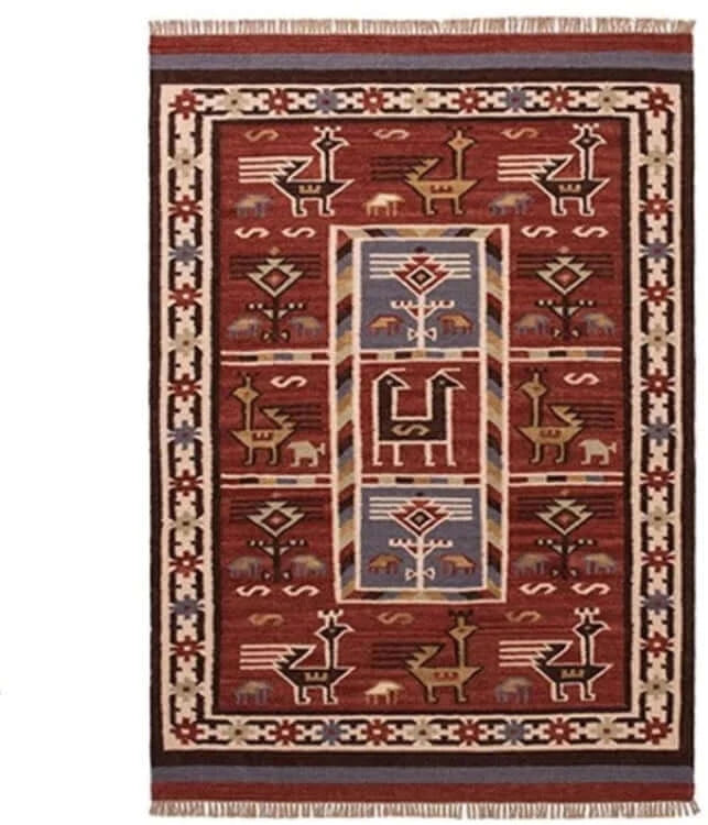 • Authentic Indian Kilim Design: A traditional flat-weave rug, expertly crafted to highlight geometric patterns inspired by nature.