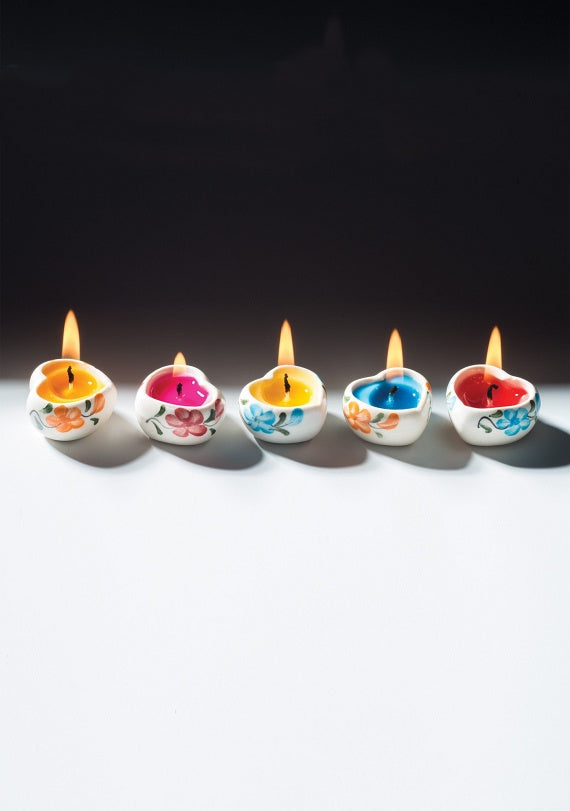 Tray of 5 Hand Painted Ceramic Heart Candles