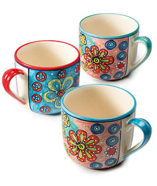 A contemporary and strong design made using the best of Indian workmanship. These wonderful daisy pattern giant mugs are hand painted with a bold and colourful daisy pattern and then hand fired.