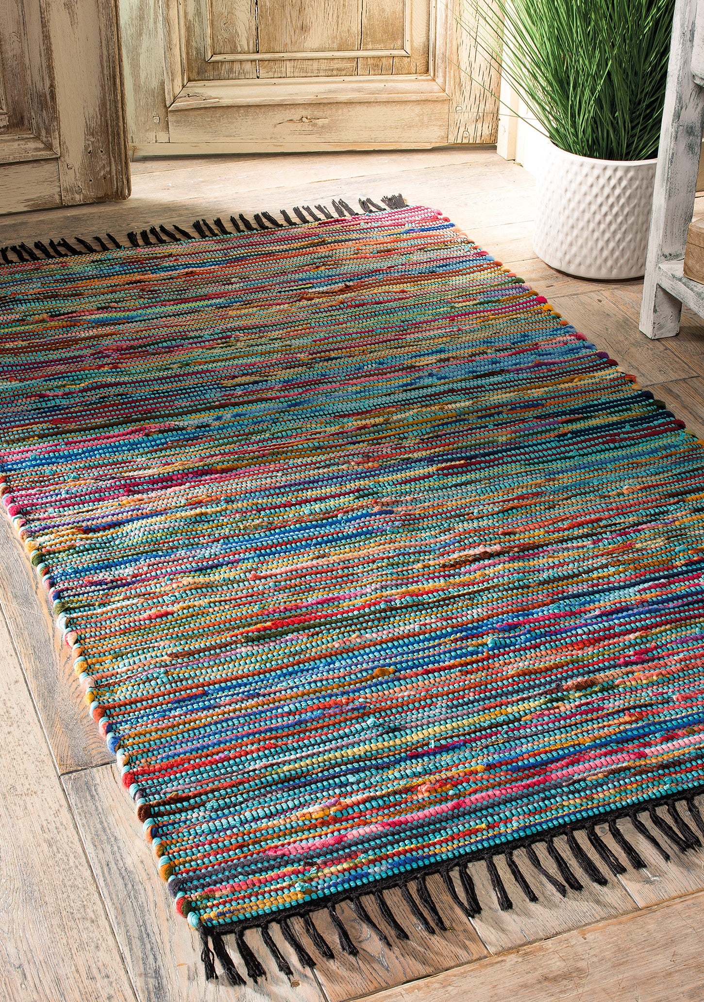 Expertly crafted using 100% recycled materials, this rug offers exceptional value. Combining recycled cotton with plush fleece, this rug is both durable and luxuriously soft. Hand-loomed in India, it is an eco-friendly addition to your home decor.