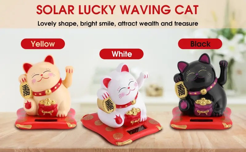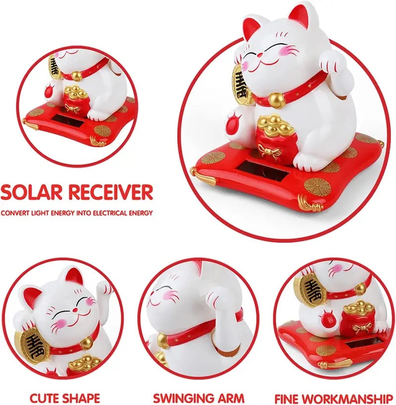 The Solar Powered Waving Lucky Cat, also known as the Fortune Cat or Money Cat, is believed to bring good luck to its owner. It is commonly displayed at the entrance of homes, businesses, and offices to welcome abundance and prosperity.