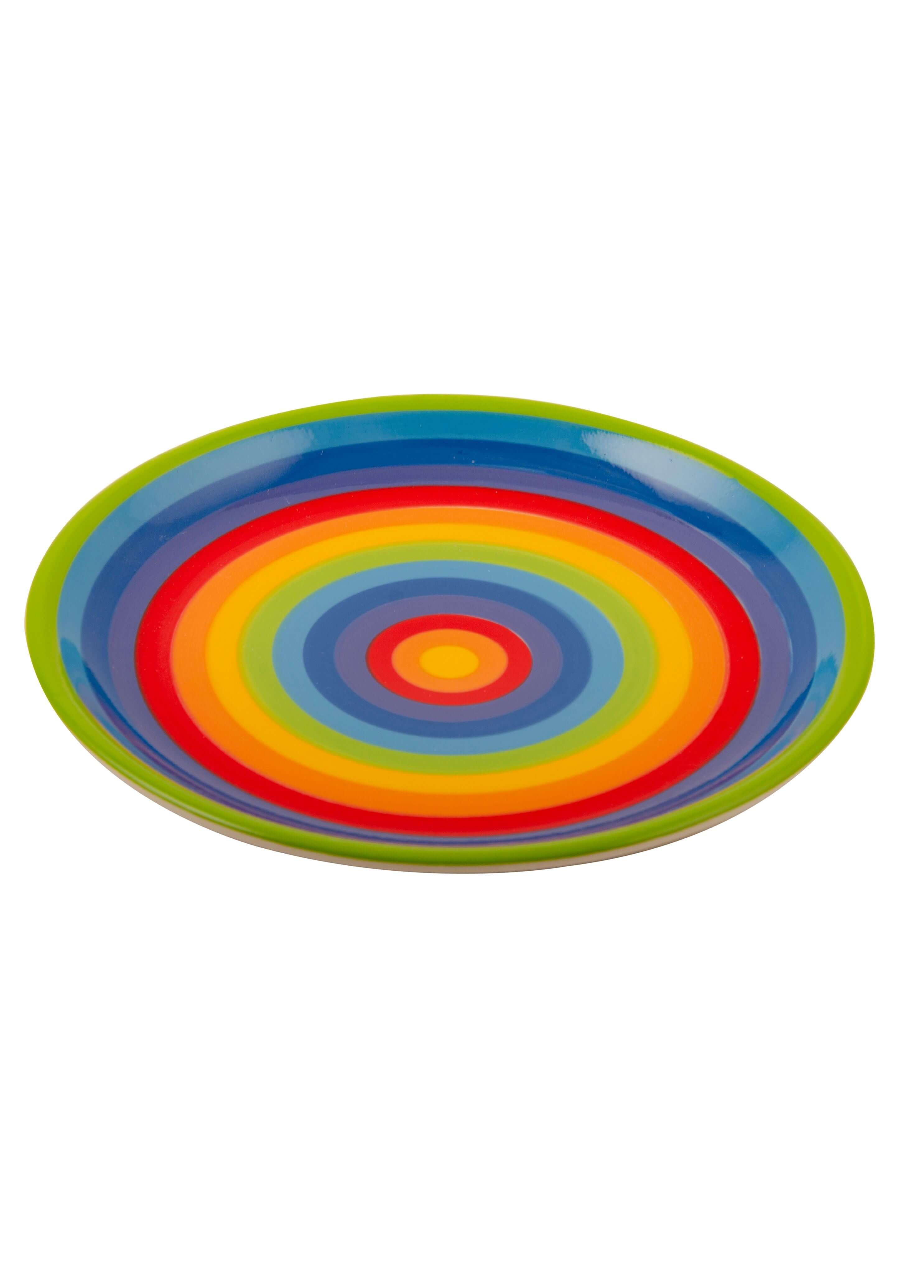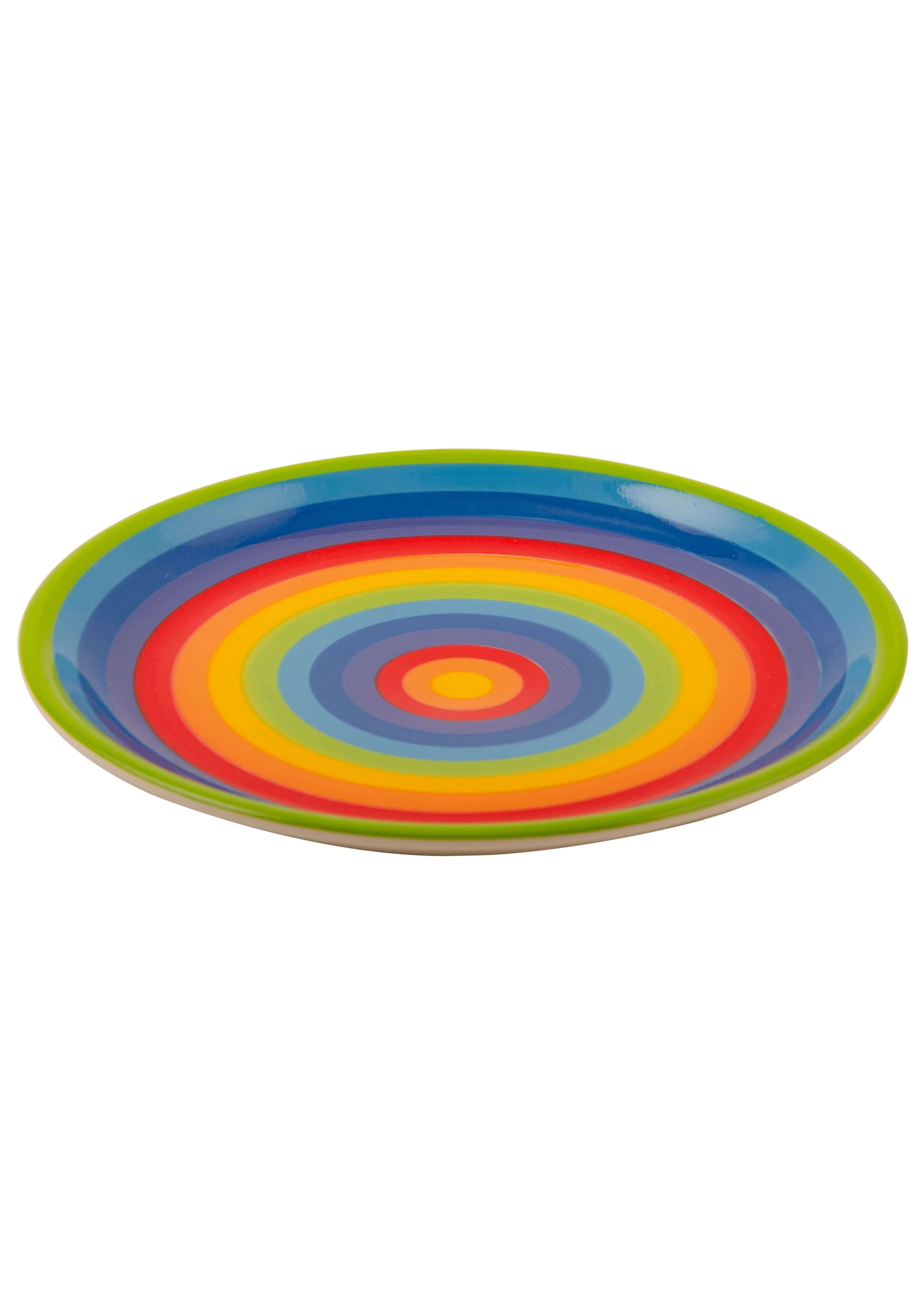 | Handmade and Fairly Traded Ceramic Rainbow Stripe Plate, hand painted and produced in Thailand. Dishwasher and Microwave safe. Bright and cheerful, a beautiful addition to any home. Size is approximately 21x21x2.5cm |