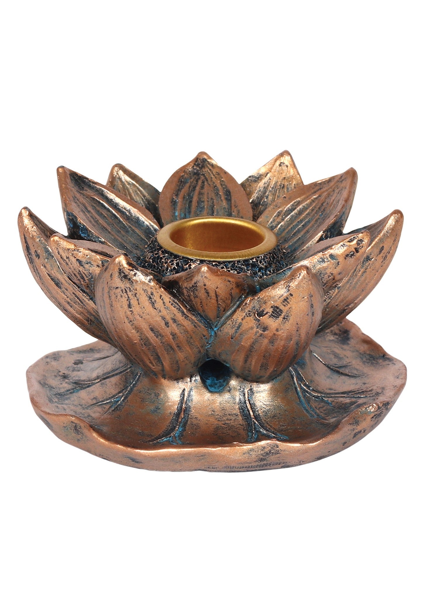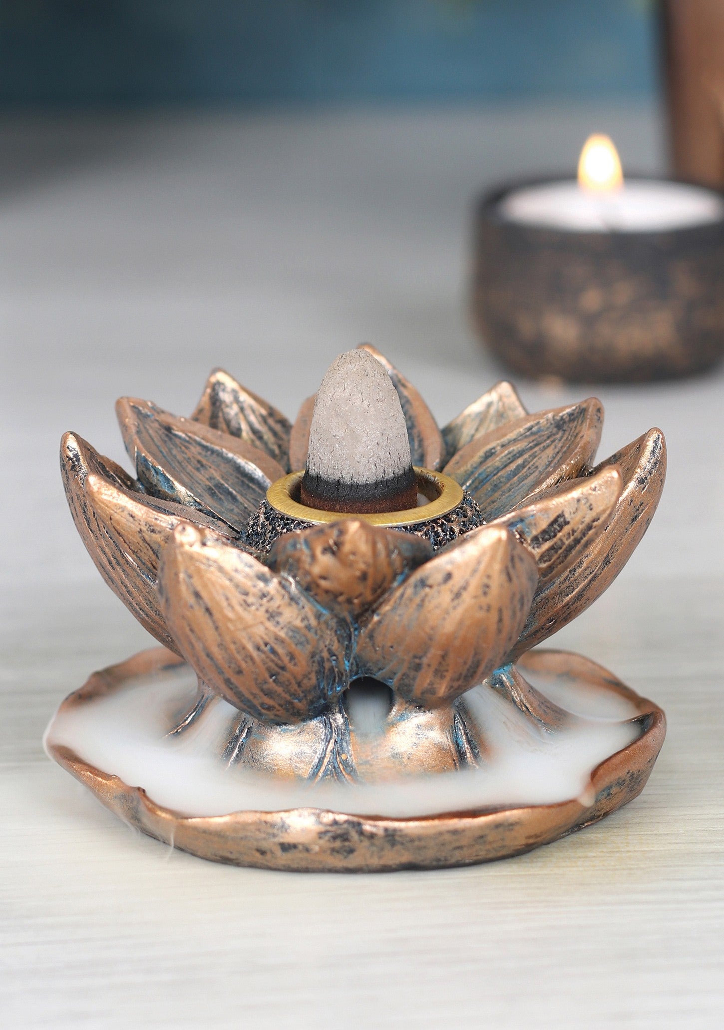 Crafted from high-quality materials and adorned with a stunning bronze finish, our backflow incense burner is the epitome of sophistication and luxury. With its intricate lotus flower design, this burner will not only add a touch of elegance to your space, but also create a mesmerizing visual experience as the smoke cascades downwards, evoking a feeling of tranquility and serenity. Elevate your senses and surround yourself with beauty and art every time you light a cone.