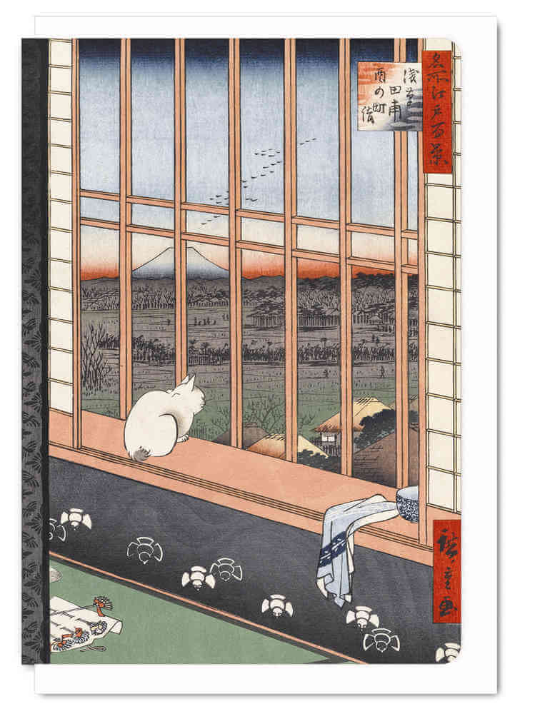 Japanese Greeting Card MEGURO DRUM BRIDGE AND SUNSET HILL (1857)