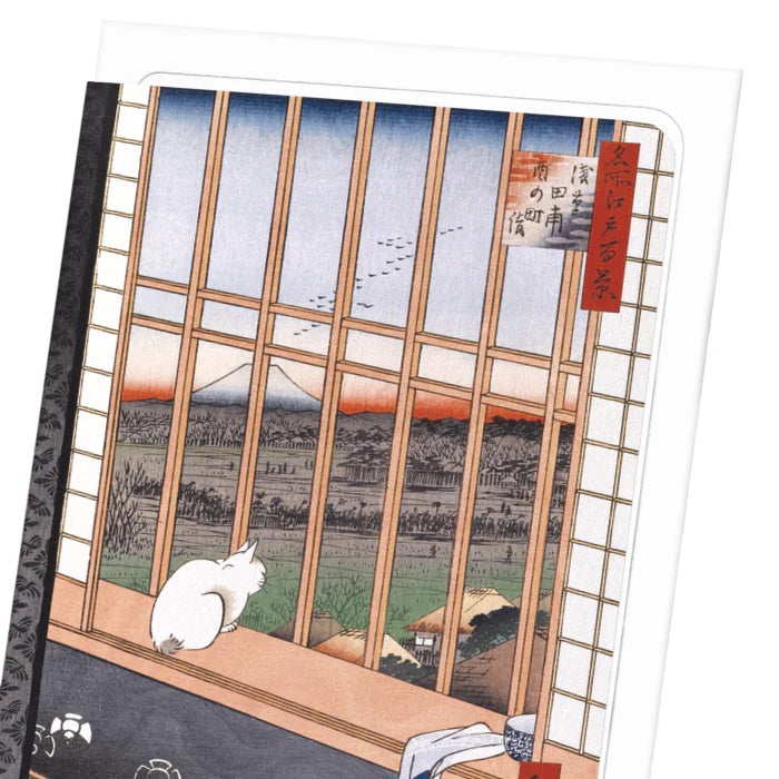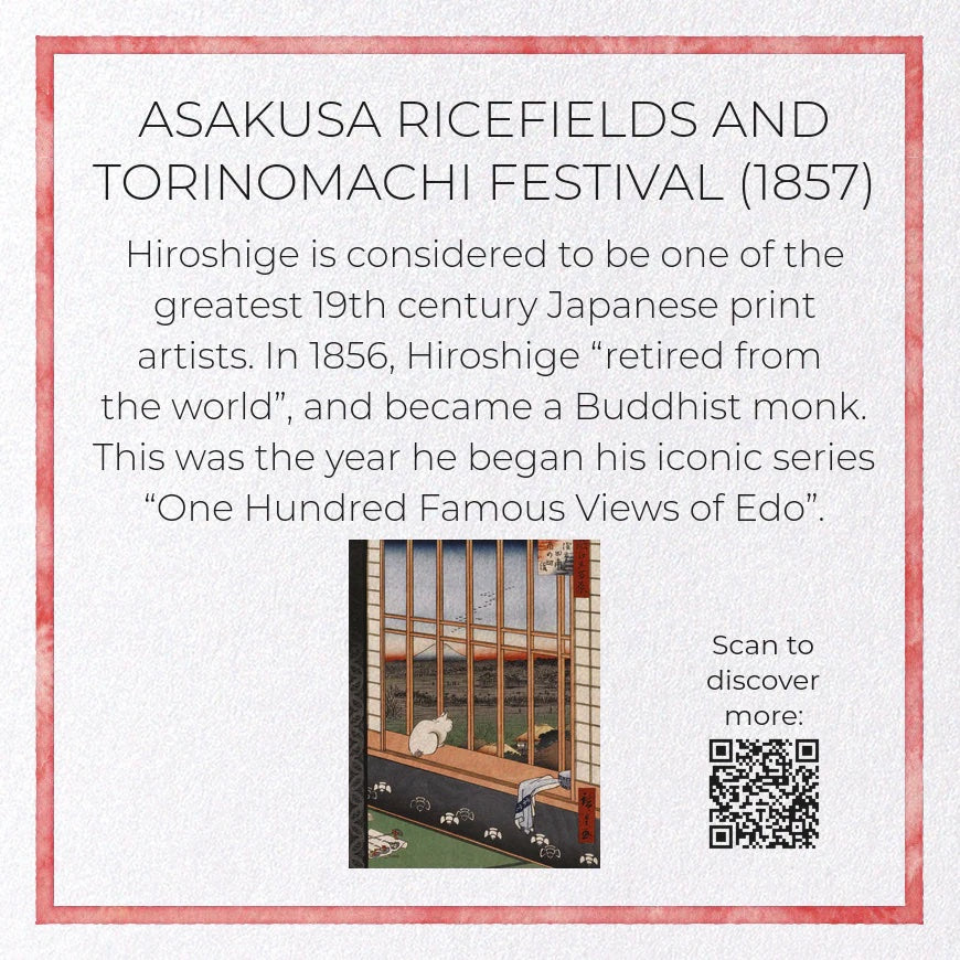 Hiroshige is considered to be one of the greatest 19th century Japanese print artists. In 1856, Hiroshige “retired from the world”, and became a Buddhist monk. This was the year he began his iconic series “One Hundred Famous Views of Edo”.