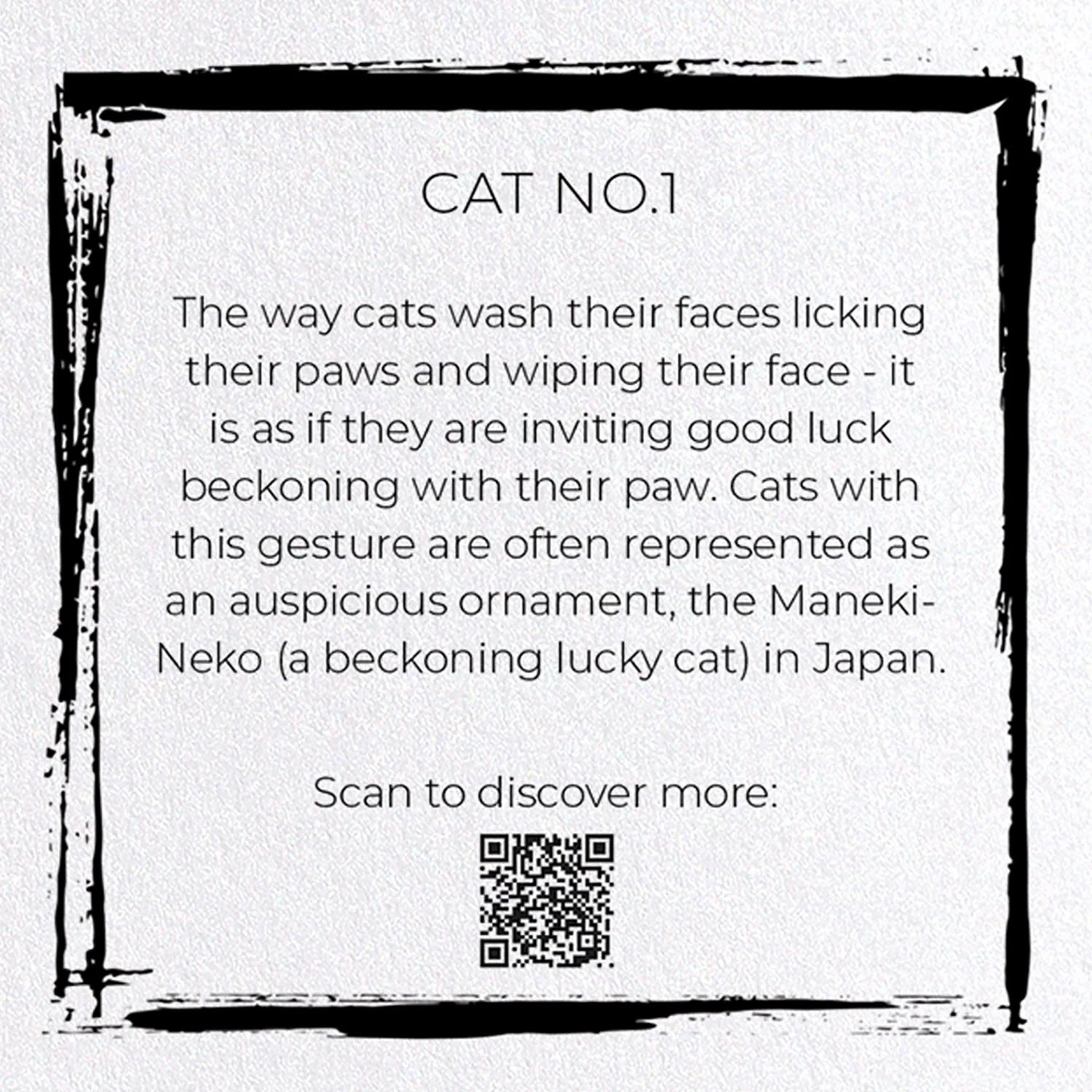 The way cats wash their faces licking their paws and wiping their face - it is as if they are inviting good luck beckoning with their paw. Cats with this gesture are often represented as an auspicious ornament, the Maneki-Neko (a beckoning lucky cat) in Japan.