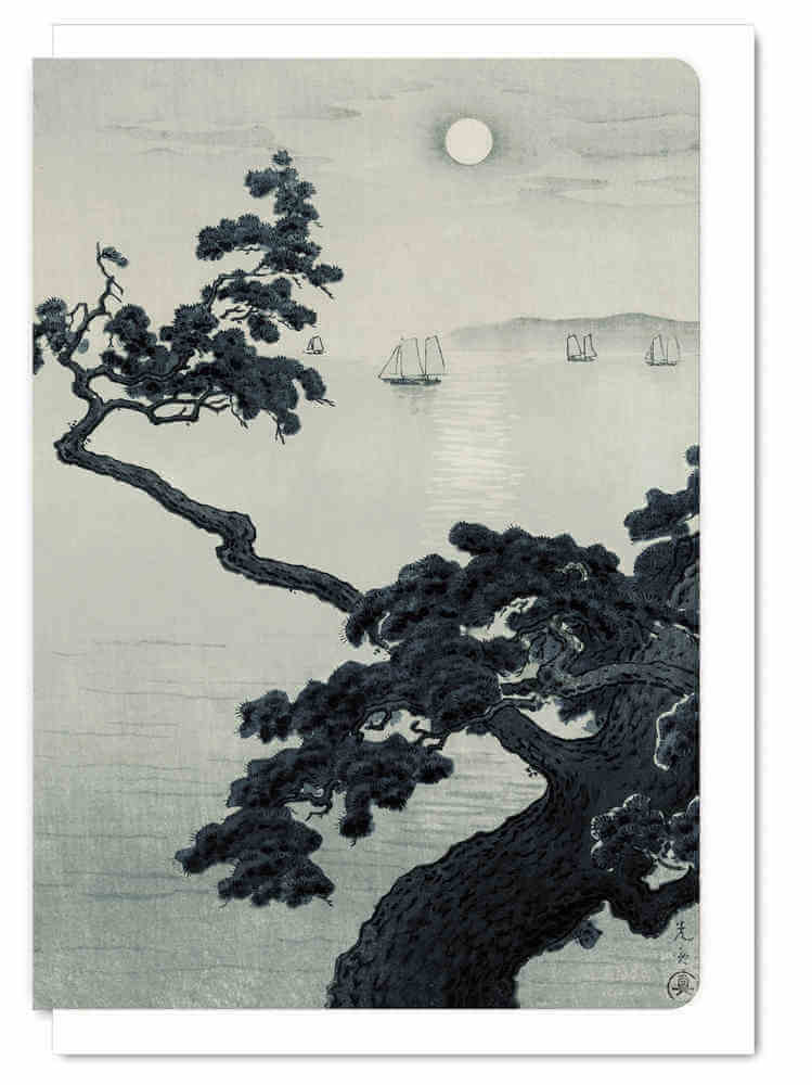Japanese Greeting Card Pine Tree At Akashi Beach