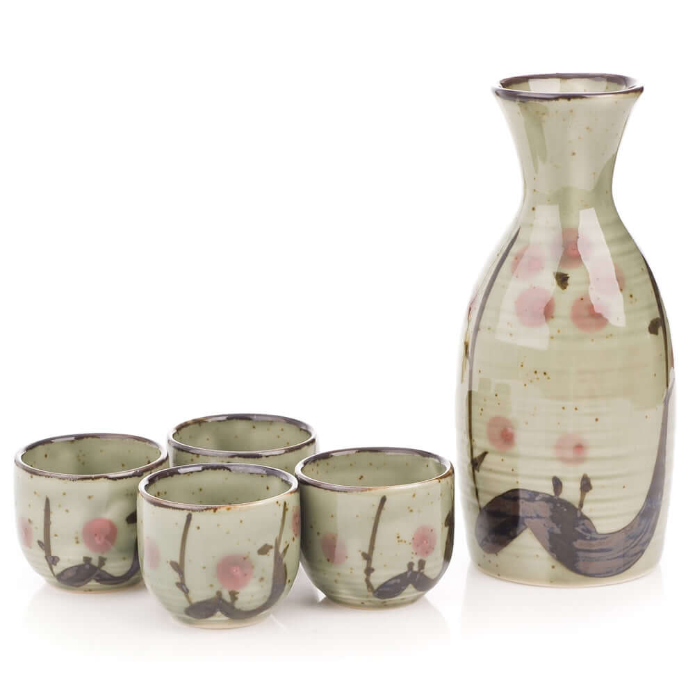 Japanese Sake Set in plum tree design