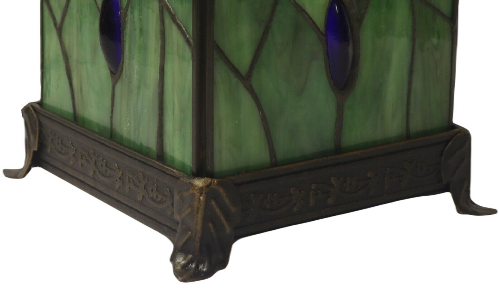 Our lovely Art Deco design Tiffany Style lamp shade is made from Favrile (meaning handcrafted) stained or iridescent glass. The shade is handmade from individual cut pieces of glass which are assembled like a jigsaw and soldered together. Approximate Size: Height: H: 27.0 x W: 12.0 x D: 12.0cm |