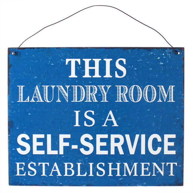 Retro Metal Wall Plaque - This laundry room is a self service establishment