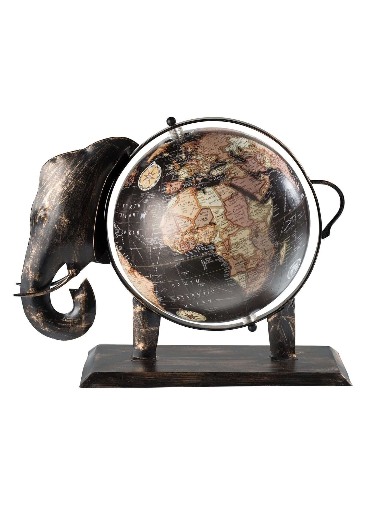 Large Metal Elephant Globe Black