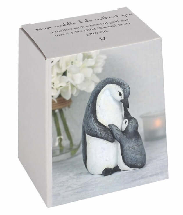 This gorgeous penguin ornament depicts a mother and baby penguin which is the perfect representation of the bond between mother and child. The ornament is called 'Mum Waddle I Do Without You' and comes with a sentiment printed on the packaging which reads 'A mother with a heart of gold and love for her child that will never grow old'. Part of our Animal Families collection at Yellow Sunrise.