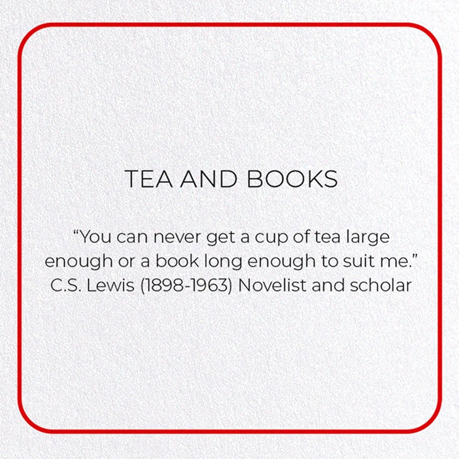 “You can never get a cup of tea large enough or a book long enough to suit me.” C.S. Lewis (1898-1963) Novelist and scholar
