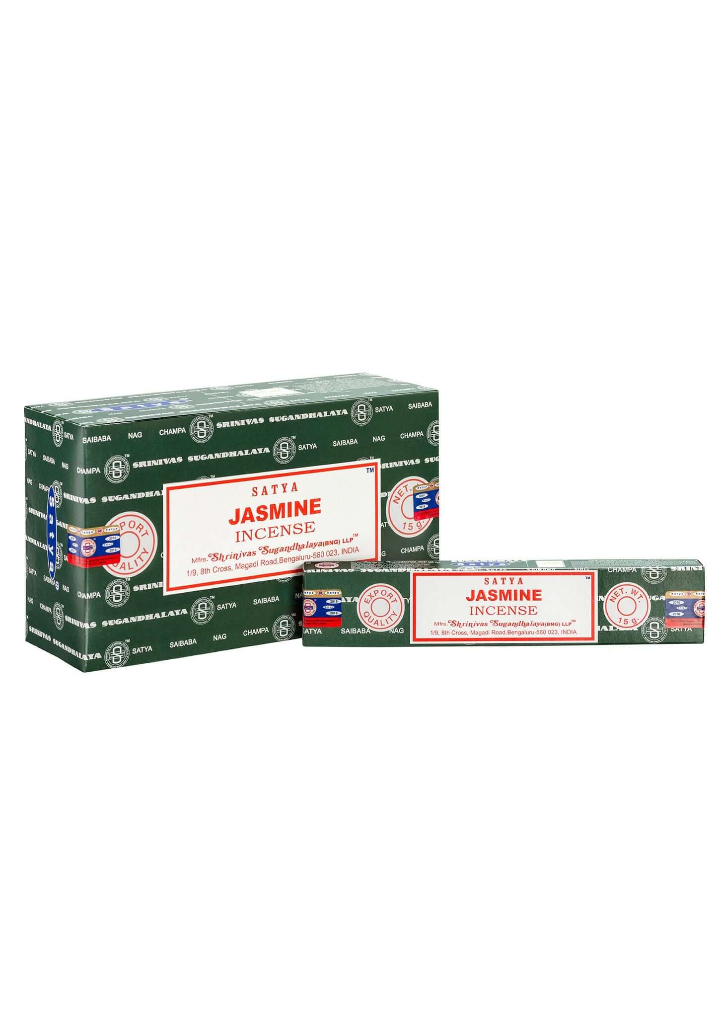 SATYA Jasmine Incense Sticks. Each incense stick is individually hand rolled in the high quality oils so each sticks can vary slightly in its thickness.