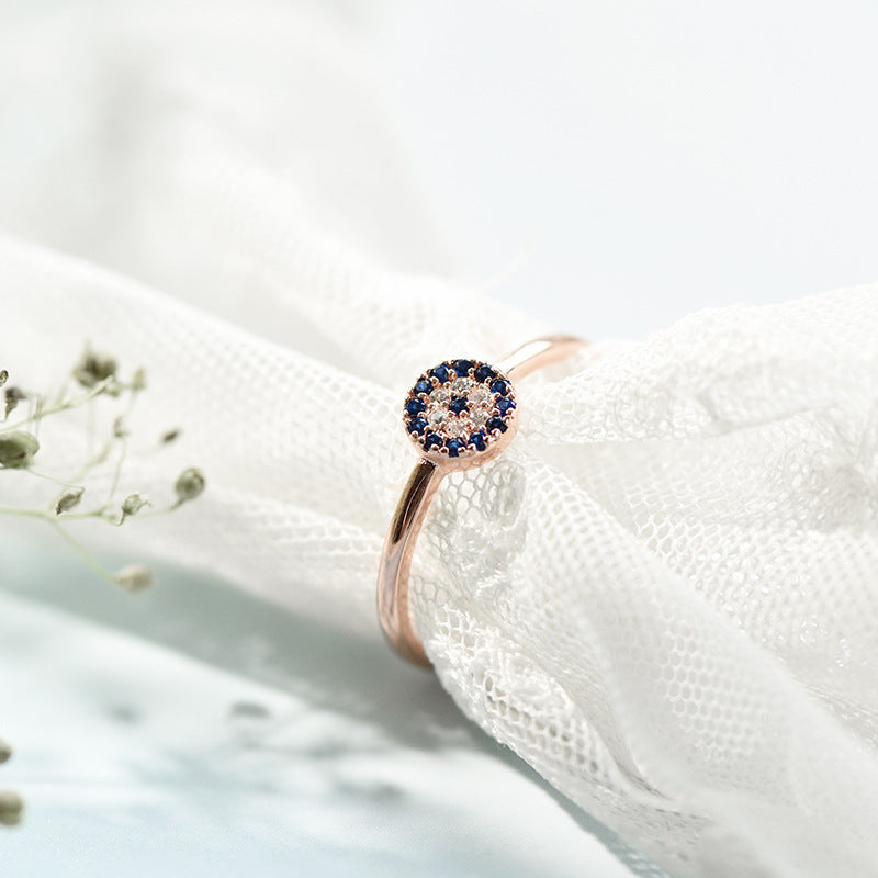 Enhance your style with our Silver Evil Eye plated with Gold Adjustable Ring, featuring a brilliant cubic zirconia on a delicate band. This effortlessly beautiful piece not only looks great, but also believed to offer protection against negative energy and brings good luck to your life. It's the perfect gift for those in need of some extra positivity.