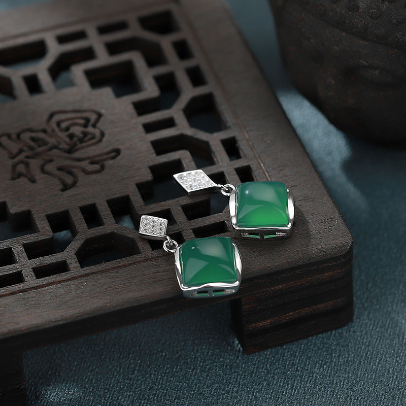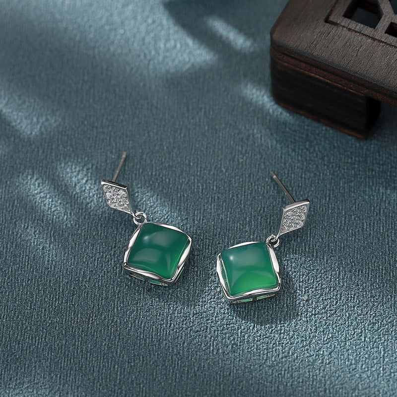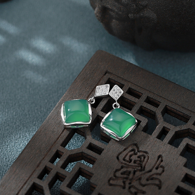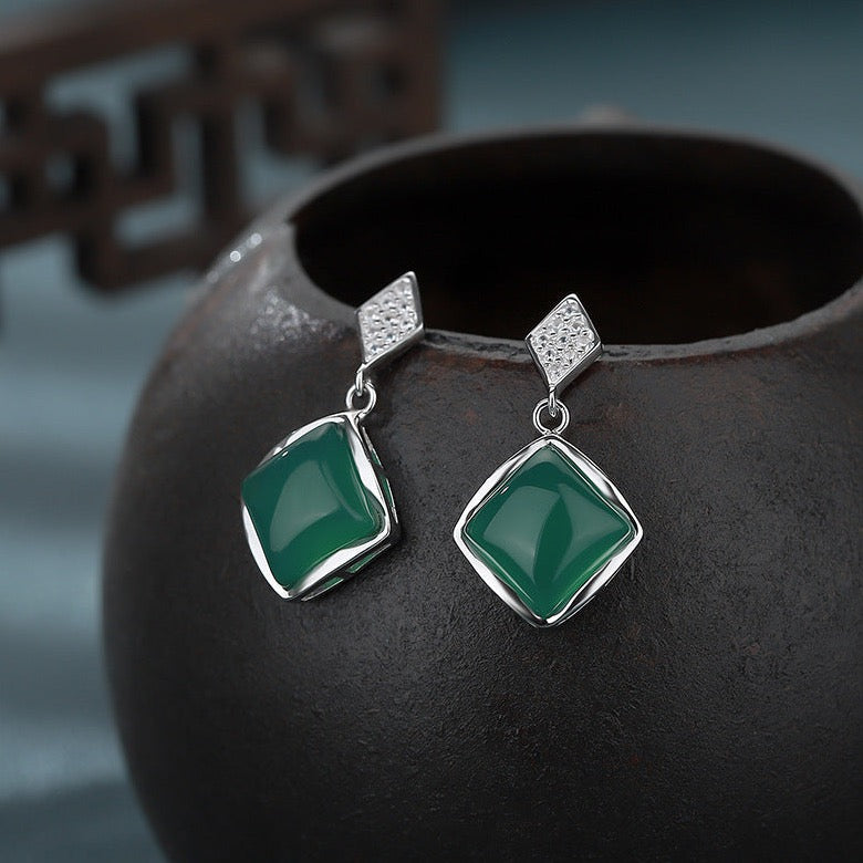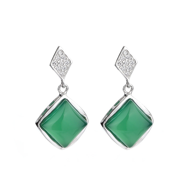 Add a touch of elegance and glamour to any look with these gorgeous Silver Jade Diamond shaped Earrings. Crafted with a diamond-shaped design, these earrings will add the perfect sparkle to any outfit. Simple yet exquisite, they make a beautiful gift for any special occasion.