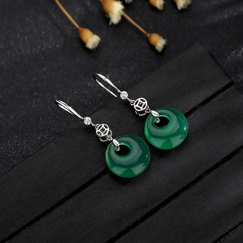 Silver Jade Donut Earrings