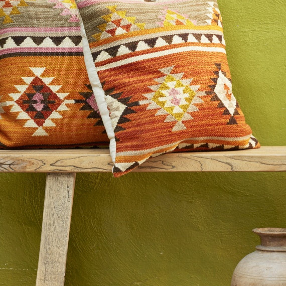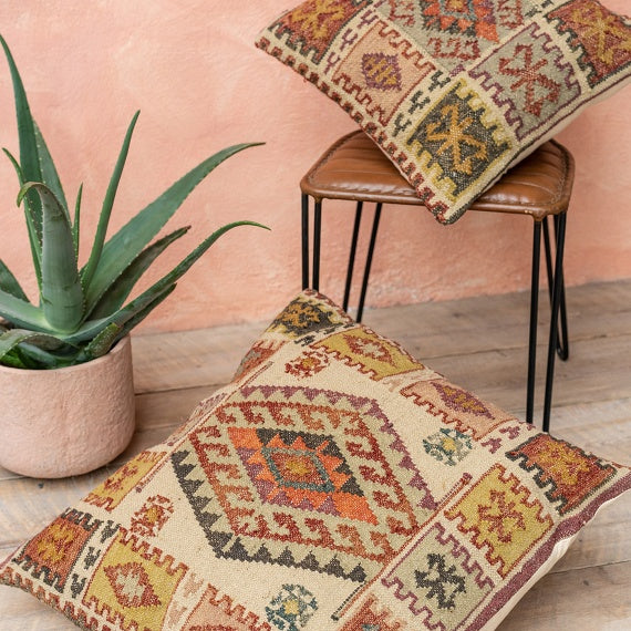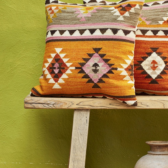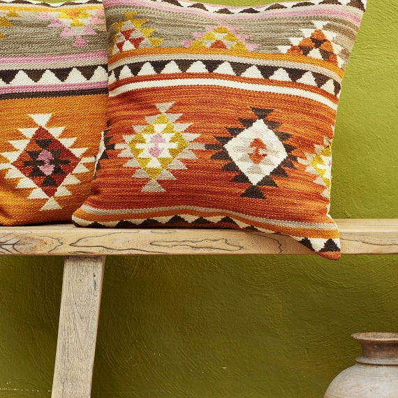 Soft furnishings at Yellow Sunrise are bright, colourful and fair trade. Our wonderful range of Kilim or kilim Rugs has just been extended to include a new 100% cotton range. New Sari cushion covers, throws and wall hangings. Our Moroccan range of kilim footstools, Kilim rugs and Kilim cushion covers keep growing. We have a great range of recycled cotton rag rugs great for a quick change with vibrant colours. Browse our collect of soft furnishings rugs, throws and cushion covers.