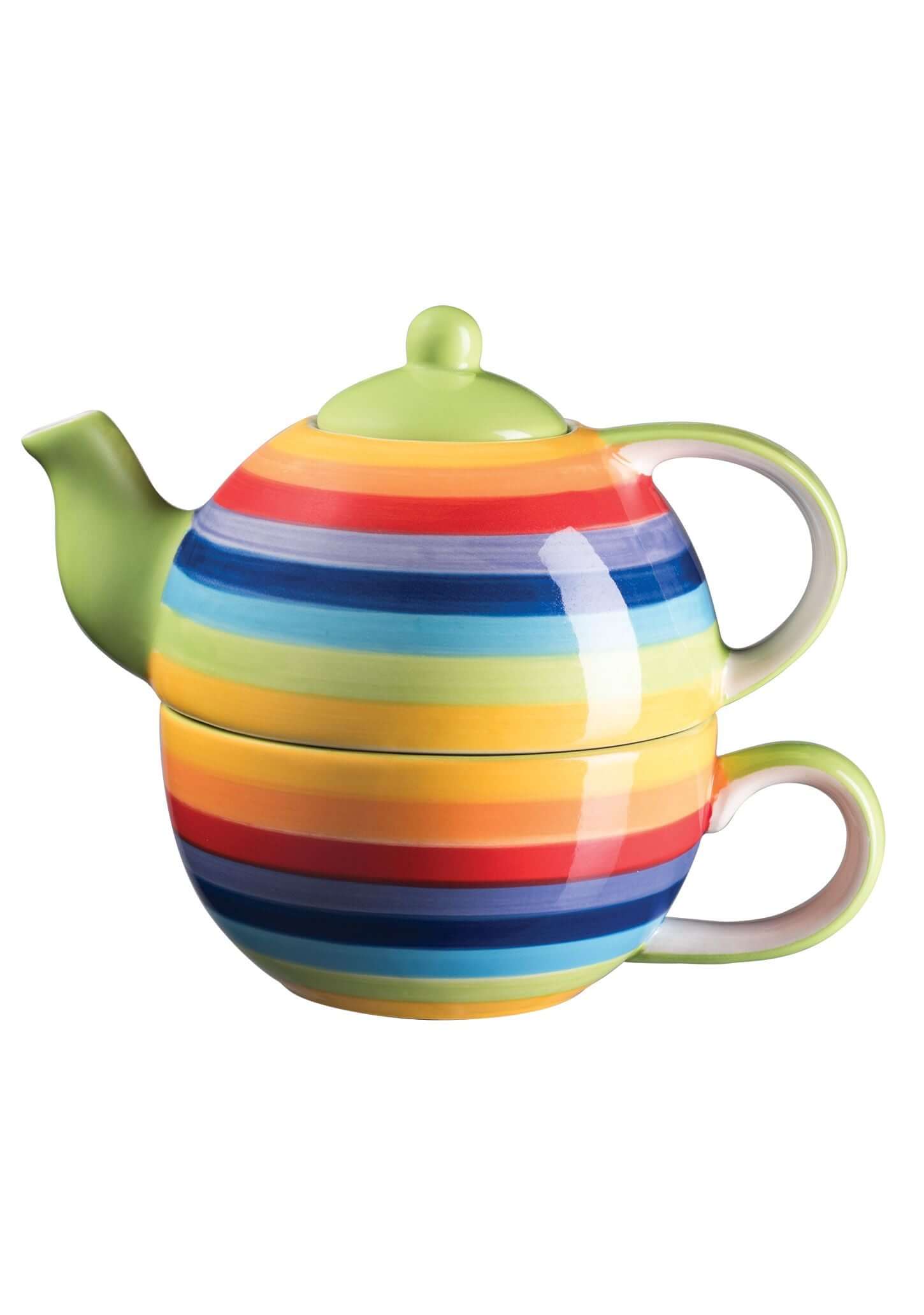 Rainbow Stripe Ceramic Teapot for One with cup