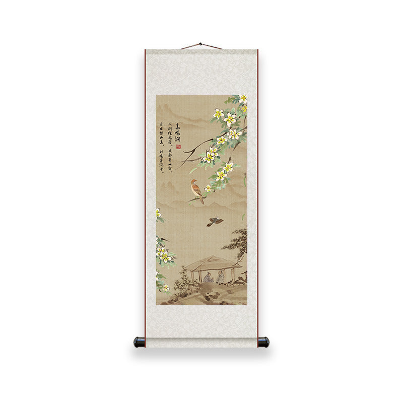 Silk Wall Scroll Bird on Branch