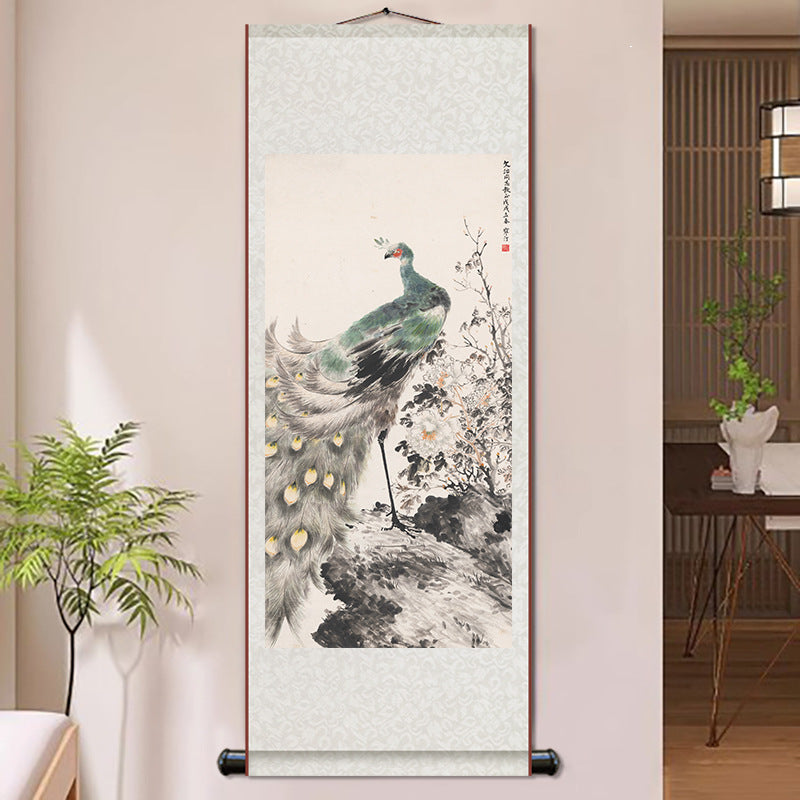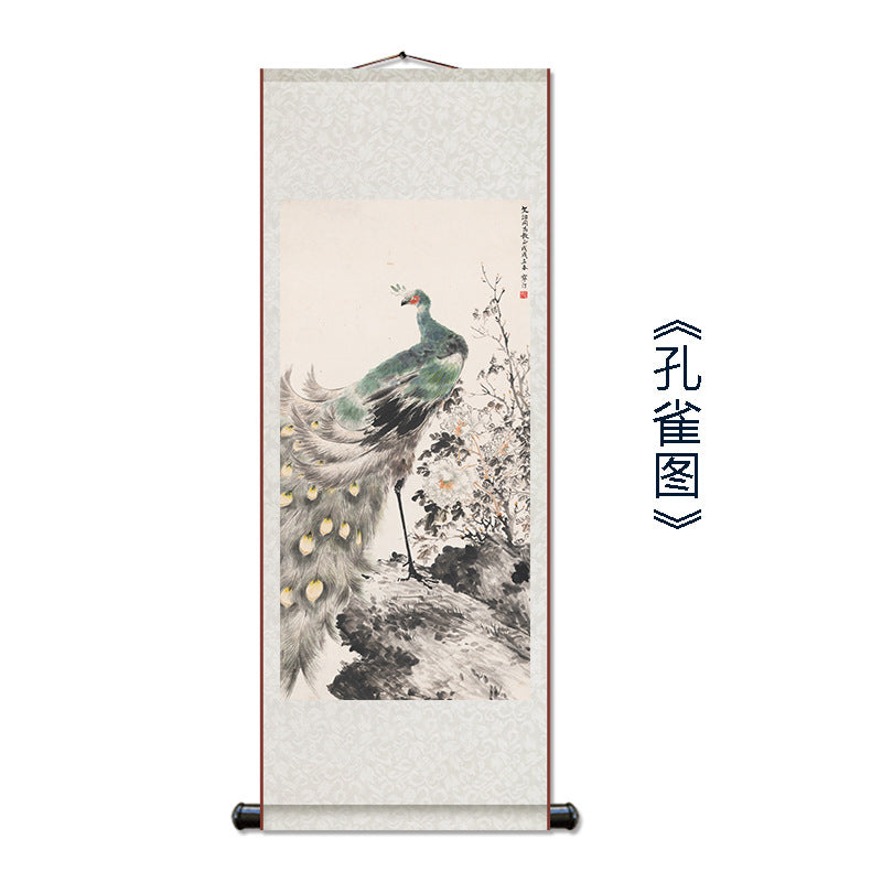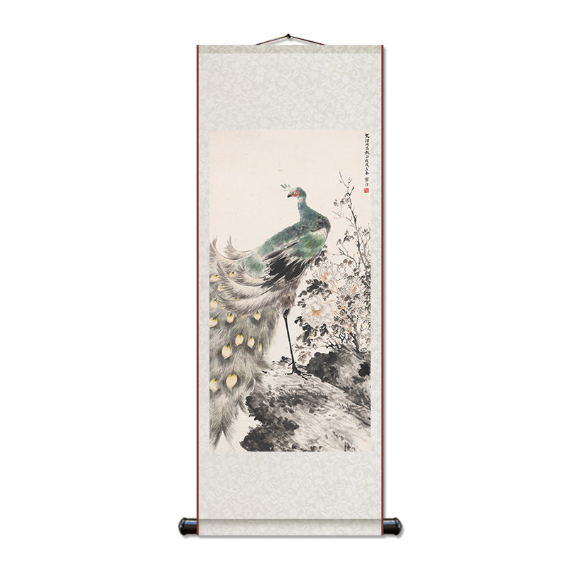 Silk Wall Scroll Peacock