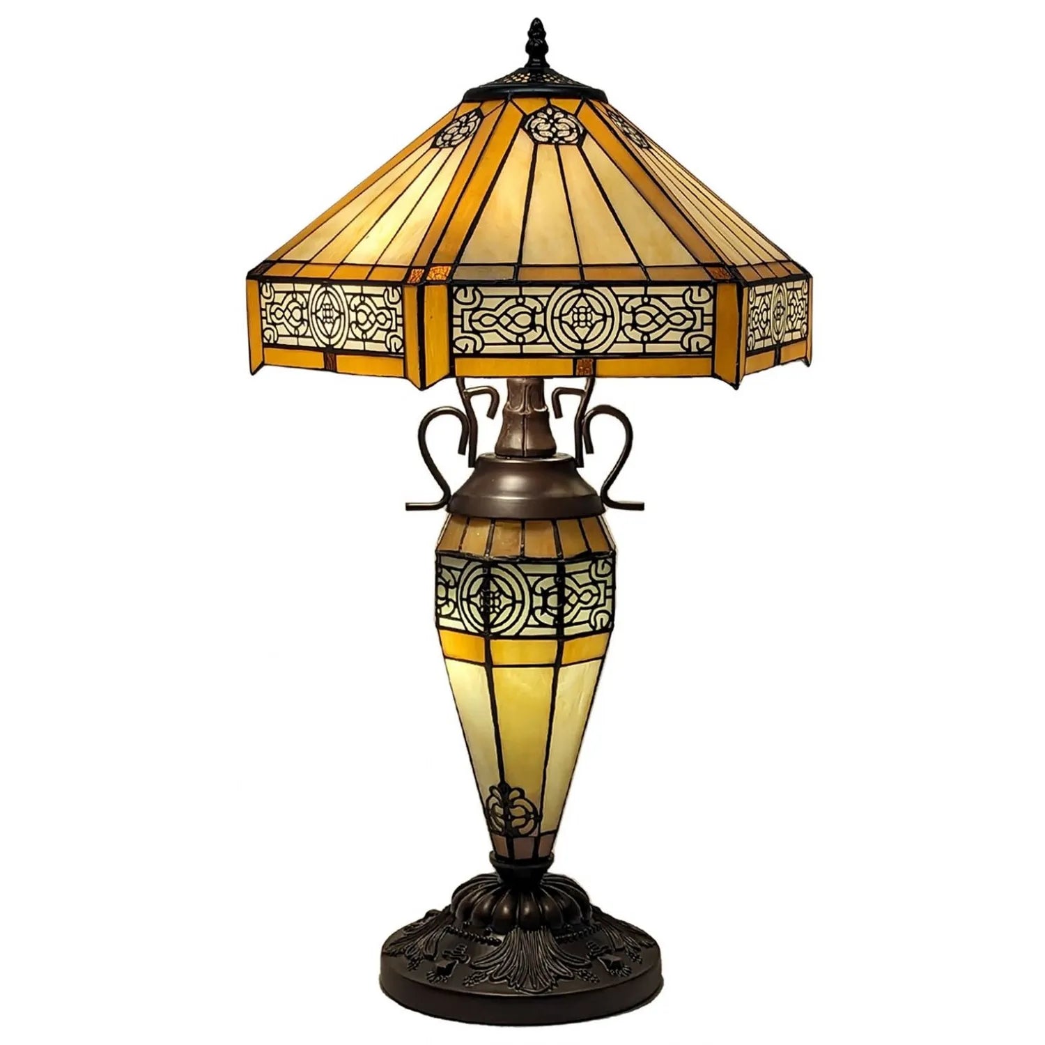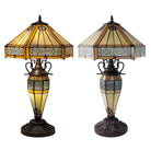 Tiffany Lamp | Cream Resin Art Deco Design Double Table Lamp 56cm