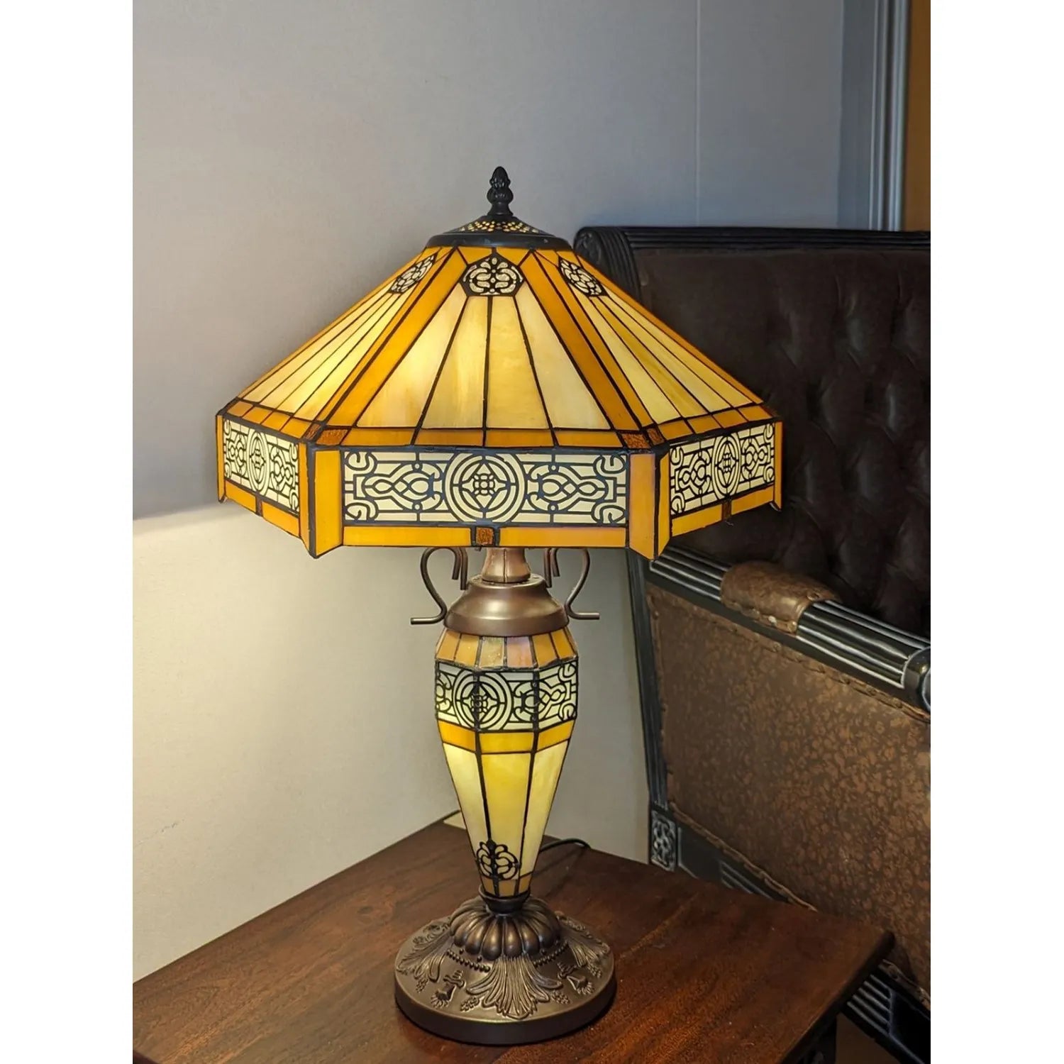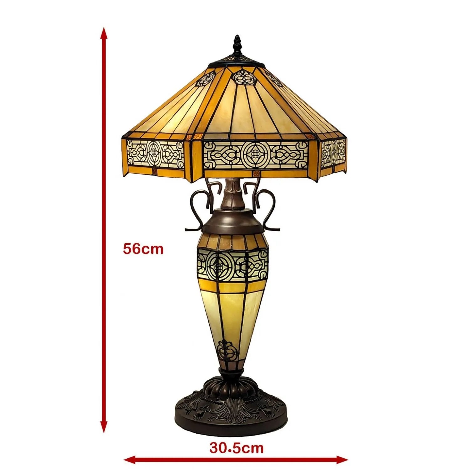 Add vintage charm and warm light to any room with this 56cm Cream Resin Double Table Lamp. Featuring a durable resin base and elegant favrile glass shades, it provides inviting, soft illumination. Its Art Deco design and handcrafted finish make each lamp unique, perfect for bedrooms, lounges, or dining areas. Suitable for LED bulbs, it blends style and function in a compact, eye-catching form.
