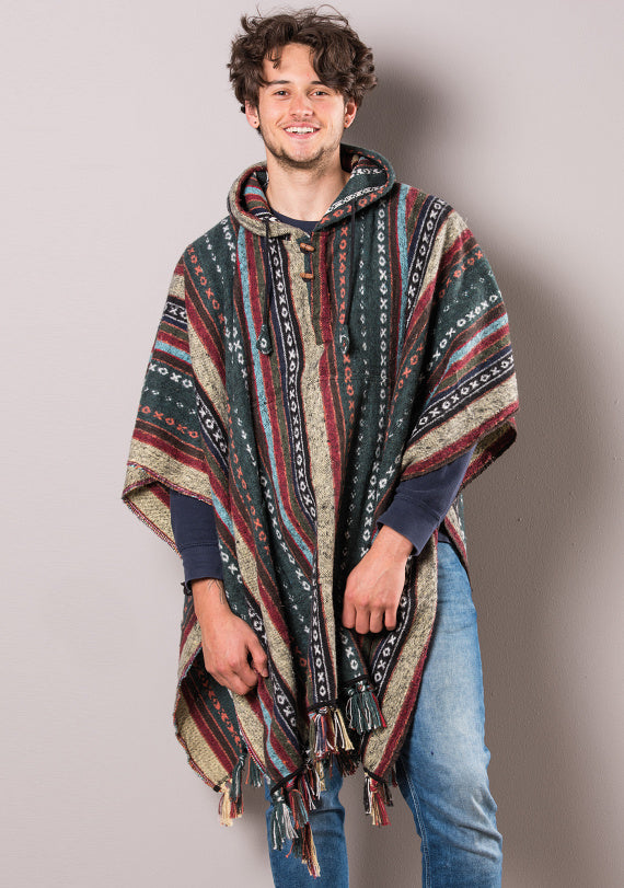 Crafted from durable, hand-woven Gheri fabric, this Annapurna poncho is adorned with vibrant Nepalese patterns. Using a traditional backstrap loom technique, each poncho is meticulously crafted therefore the item you receive won't be the same as pictures shown. Each one is resulting in slight colour variations that make each piece one-of-a-kind. Stay cozy on chilly nights with this luxurious hooded poncho, featuring a soft brushed finish.