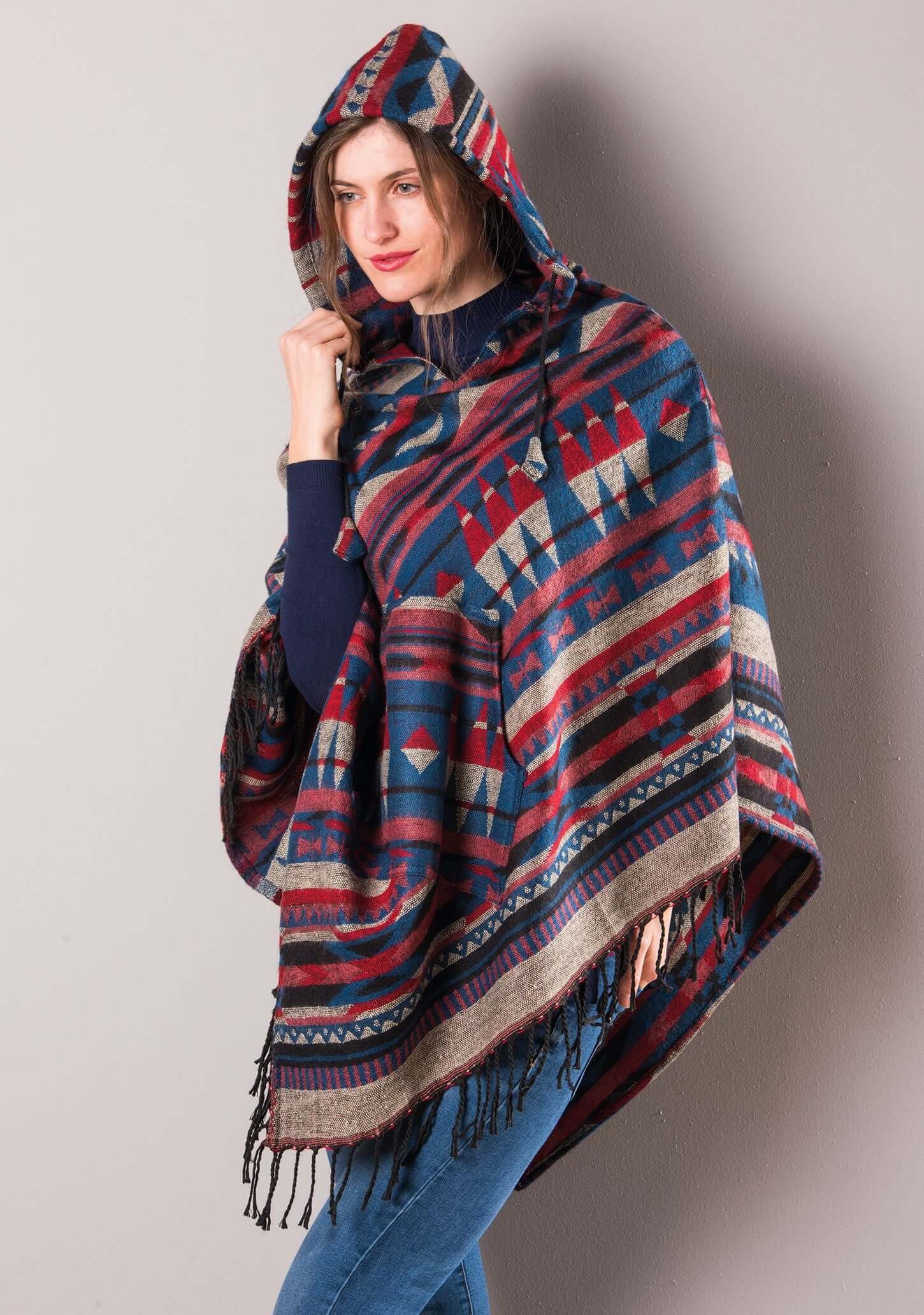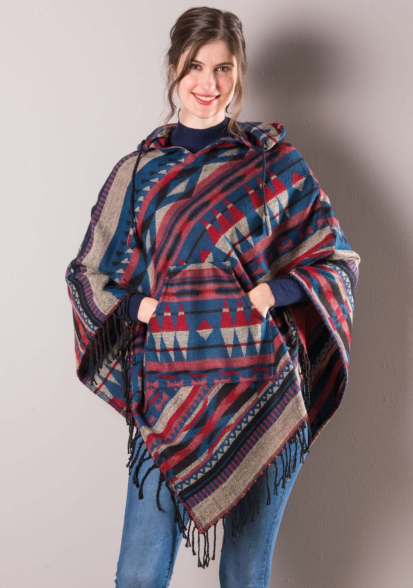 Yak Wool' is how the Nepali shopkeepers describe this material to unwitting tourists. We have yet to see an acrylic yak but we can truthfully say that the brushed acrylic is wonderfully soft and very appealing. This brushed acrylic hooded poncho will give you an extra layer of warmth on a cold evening.