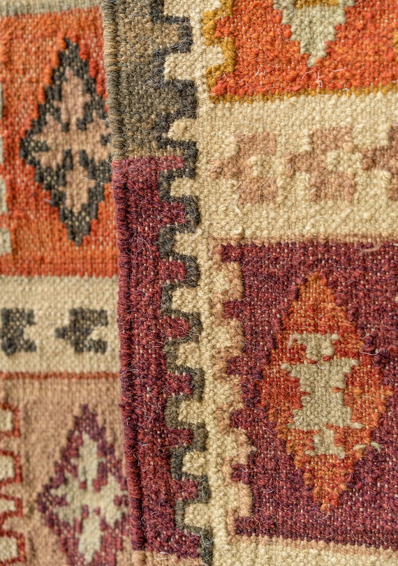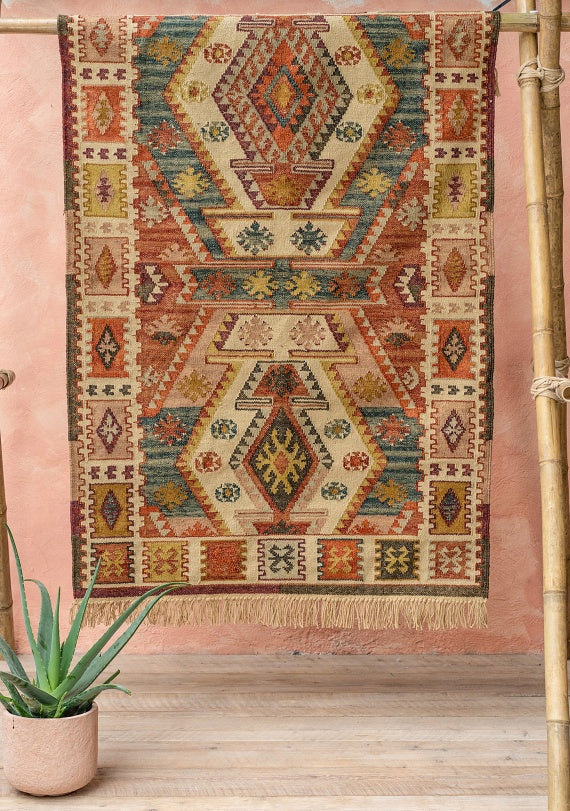 Enhance your space with this stunning Narayan Handloom Kilim Rug. Featuring a framed diamond design, warm toned fringing, and traditional hand loom craftsmanship, this fabric is durable, soft, and hypoallergenic. Perfect for indoor and outdoor areas, this rug is also UV and stain resistant, making it a practical choice for sun-filled spaces, conservatories, and areas with pets. Complete the look with matching Narayan cushion covers.
