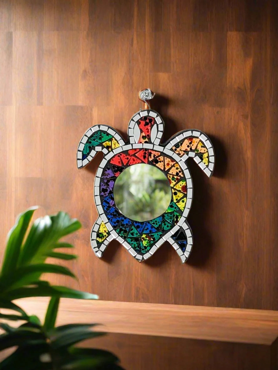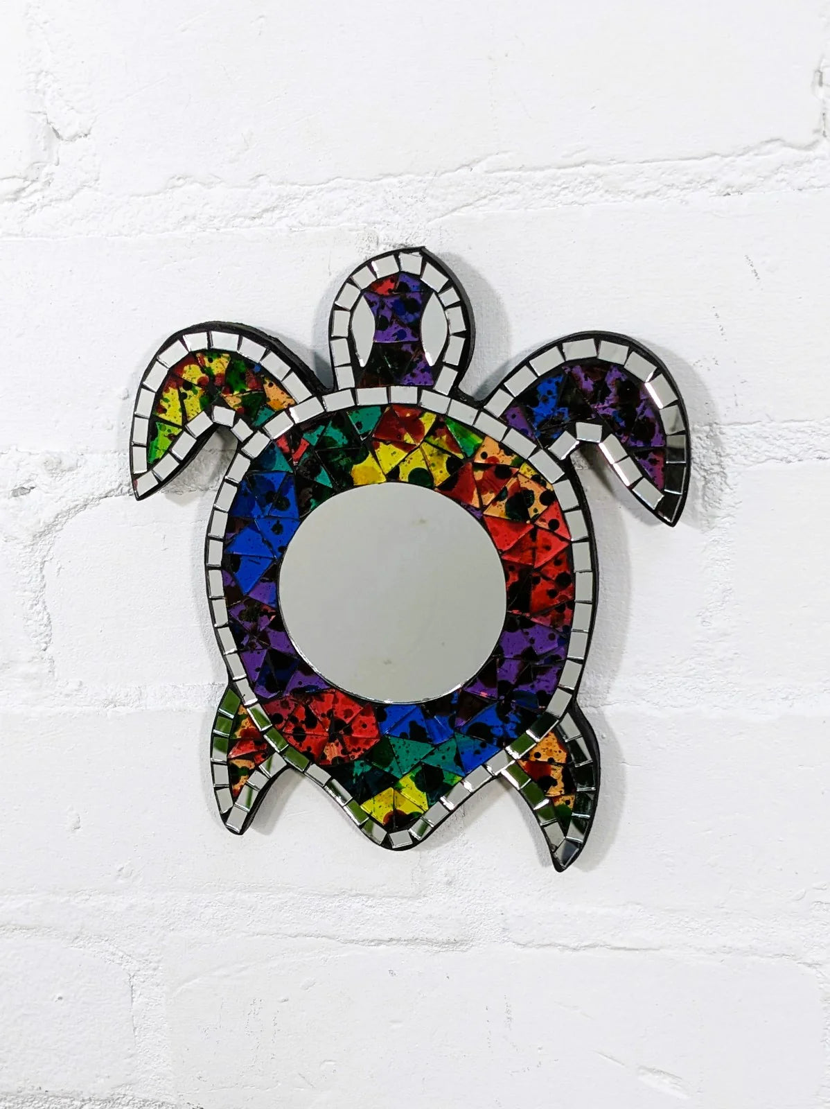Large Rainbow Mosaic Hand Mirror 40x35 cm