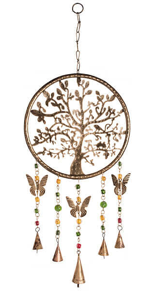 Fun and funky tree of life wind chime with decorative butterflies and colourful beads and bells.