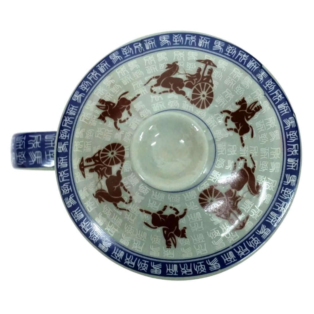 Enhance your tea-drinking experience with this beautifully crafted Chinese Horsemen Infuser Tea Mug. Made from high-quality porcelain and adorned with stunning calligraphy and ancient artwork, this three-piece set is perfect for steeping real tea leaves. Its elegant design, paired with its convenient size and versatility, makes it a lovely gift for any tea aficionado. The mug, strainer, and lid come together to create a luxurious and practical tea-drinking experience. Enjoy your favorite tea anytime, anywhere, as this set is dishwasher and microwave safe. Available in a range of colours, including blue, green, and brown, this mug is a must-have for any tea drinker.