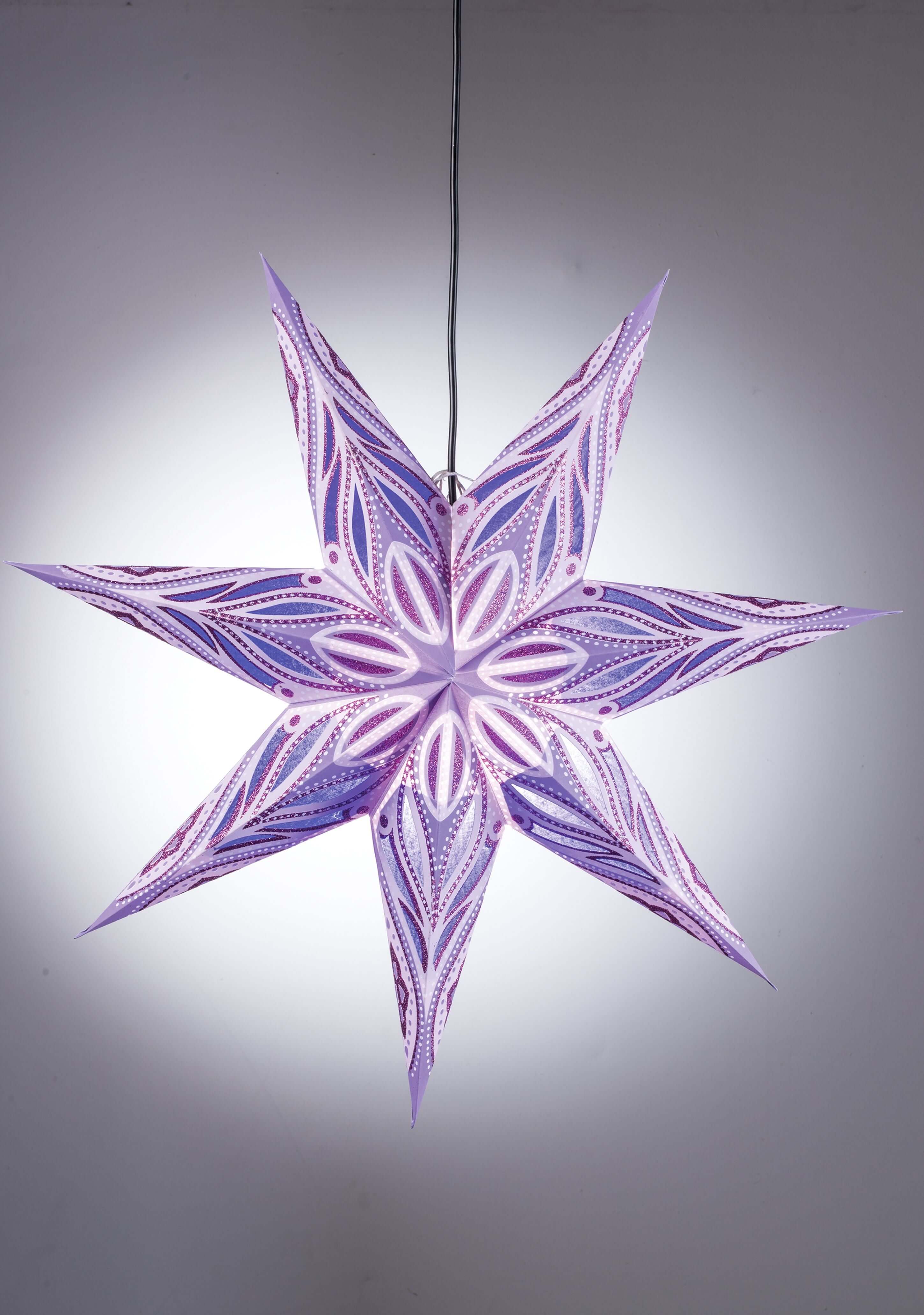 Enchanting seven point star light shade that sparkles as the light shines through the cut out patterns. Each star is printed, punched and glued by hand. The recycled handmade paper used is made from 100% cotton waste using an environmentally friendly process. This light shade comes supplied with a light bulb protector and instructions.
