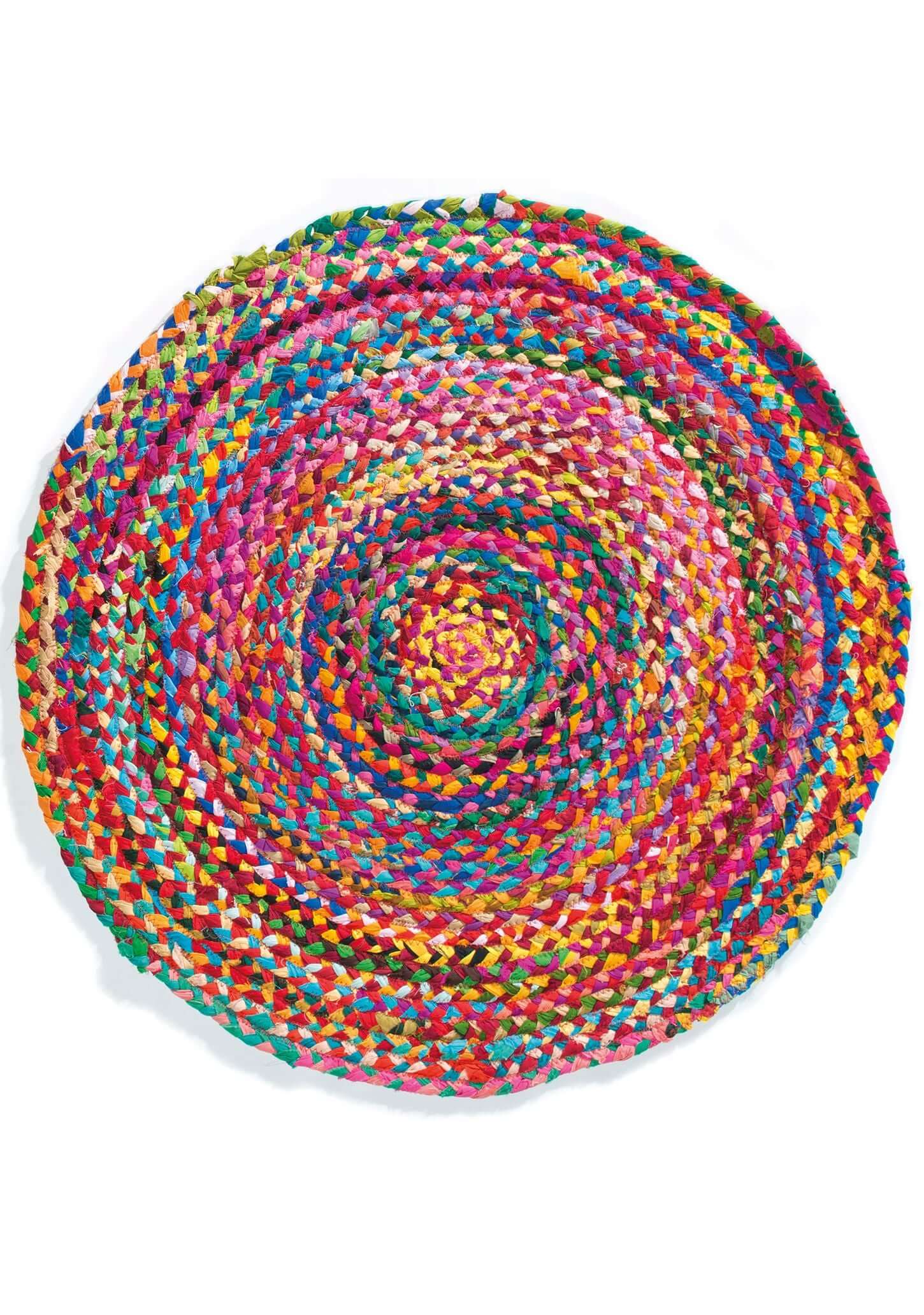 Round Multi Colour Cotton Chindi Braided Rug 120cm