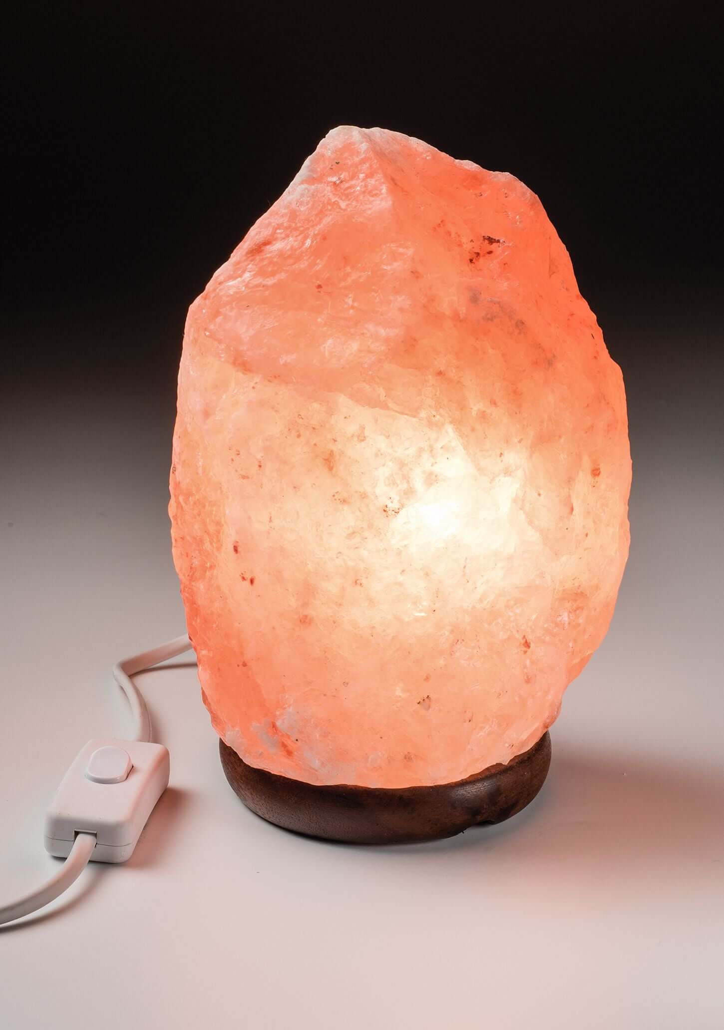 Hand made from solid blocks of Natural Himalayan rock salt with a wooden base. Salt lamps are believed by some to have positive therapeutic health and well-being qualities. When plugged in they give the room a wonderful soft warm glow.
