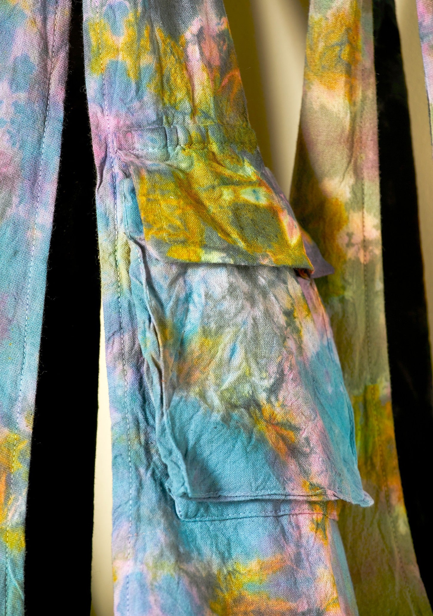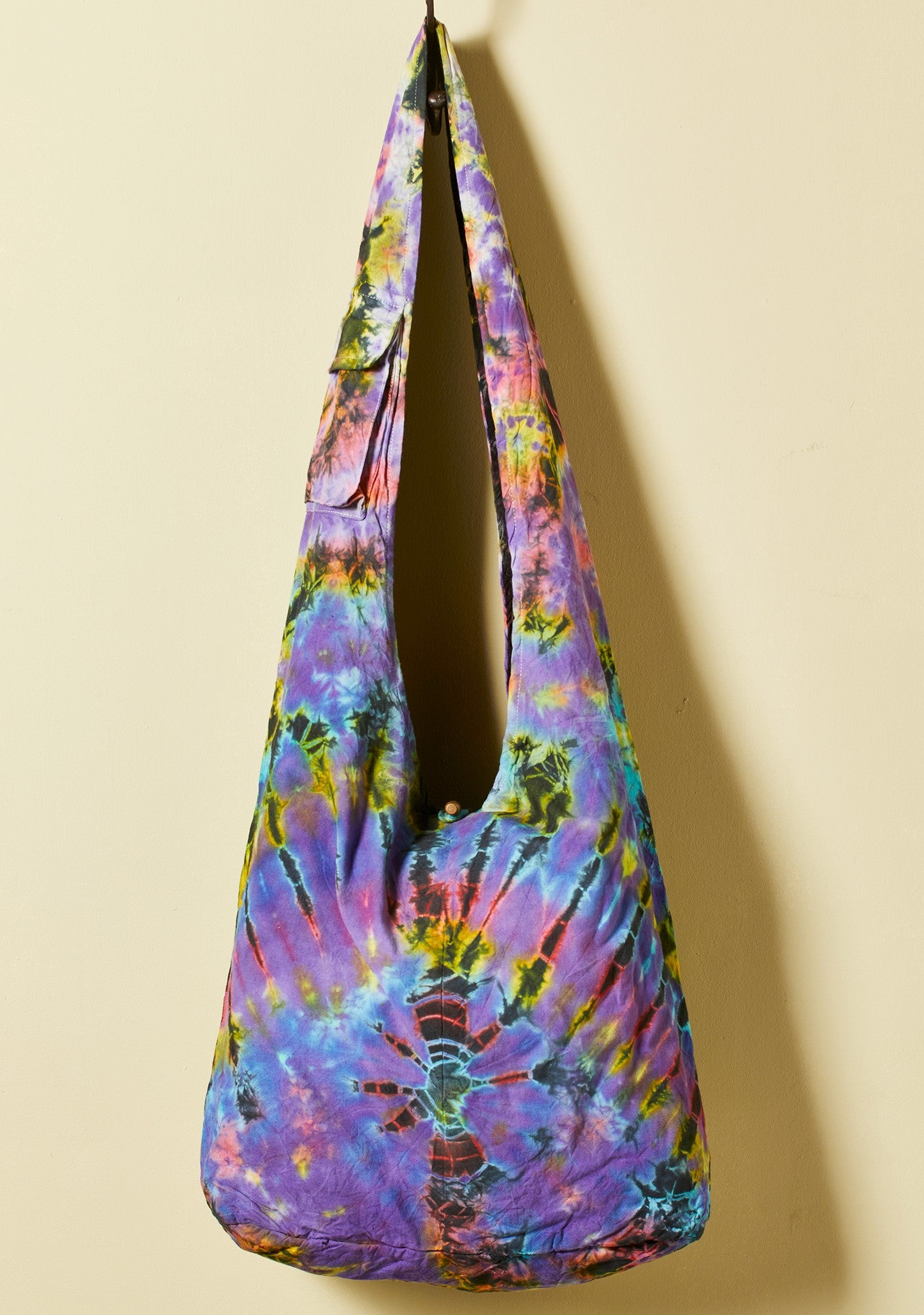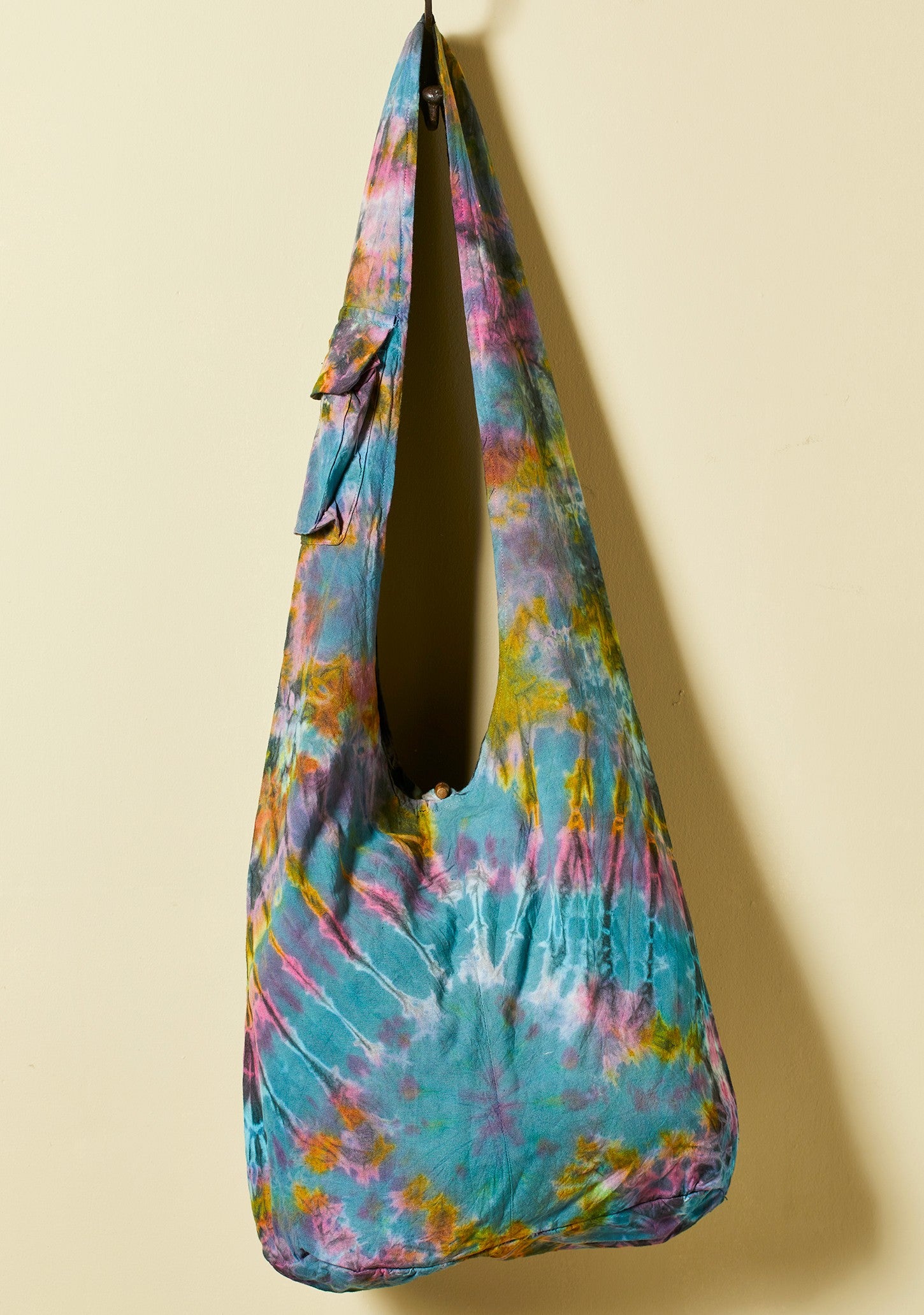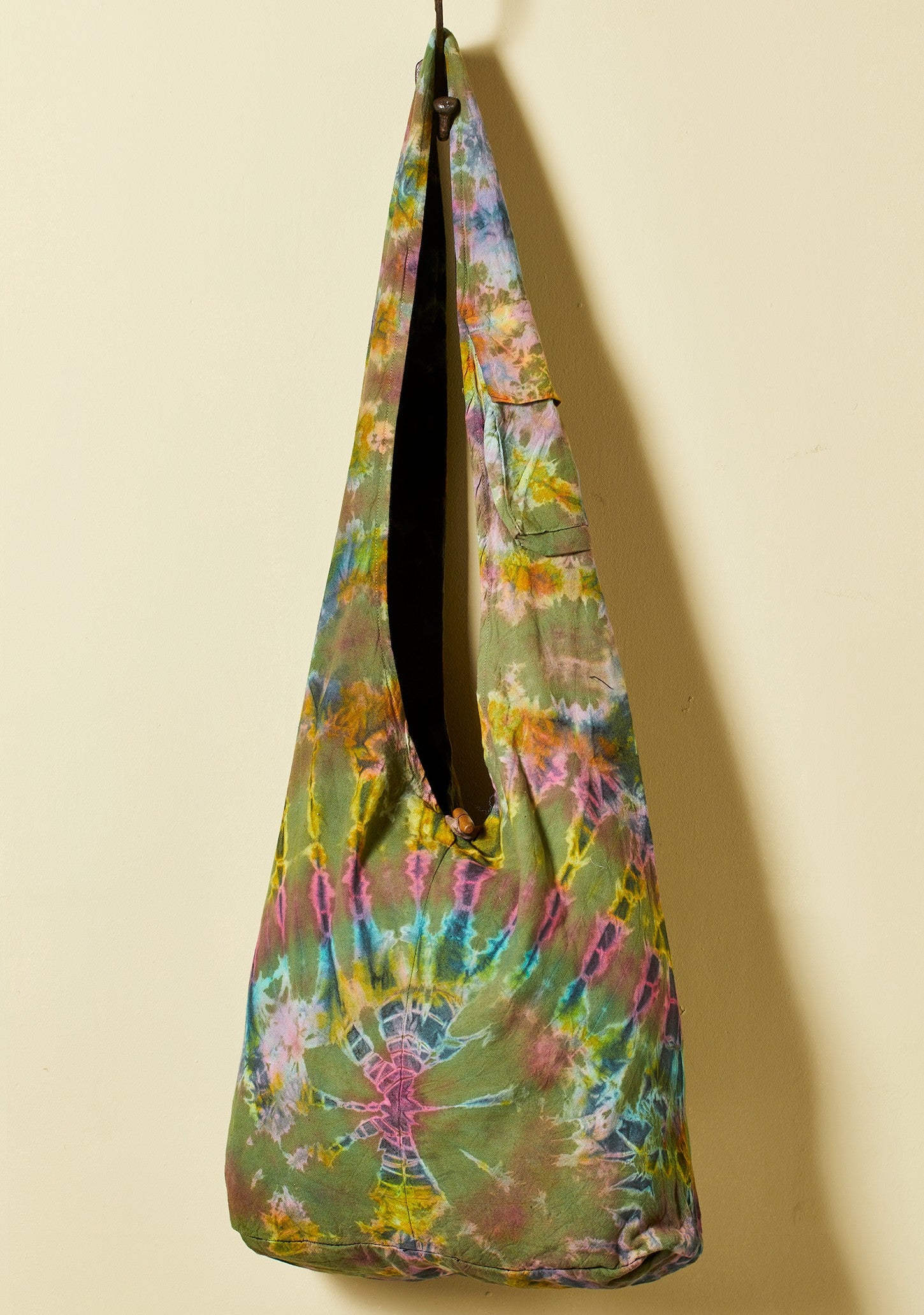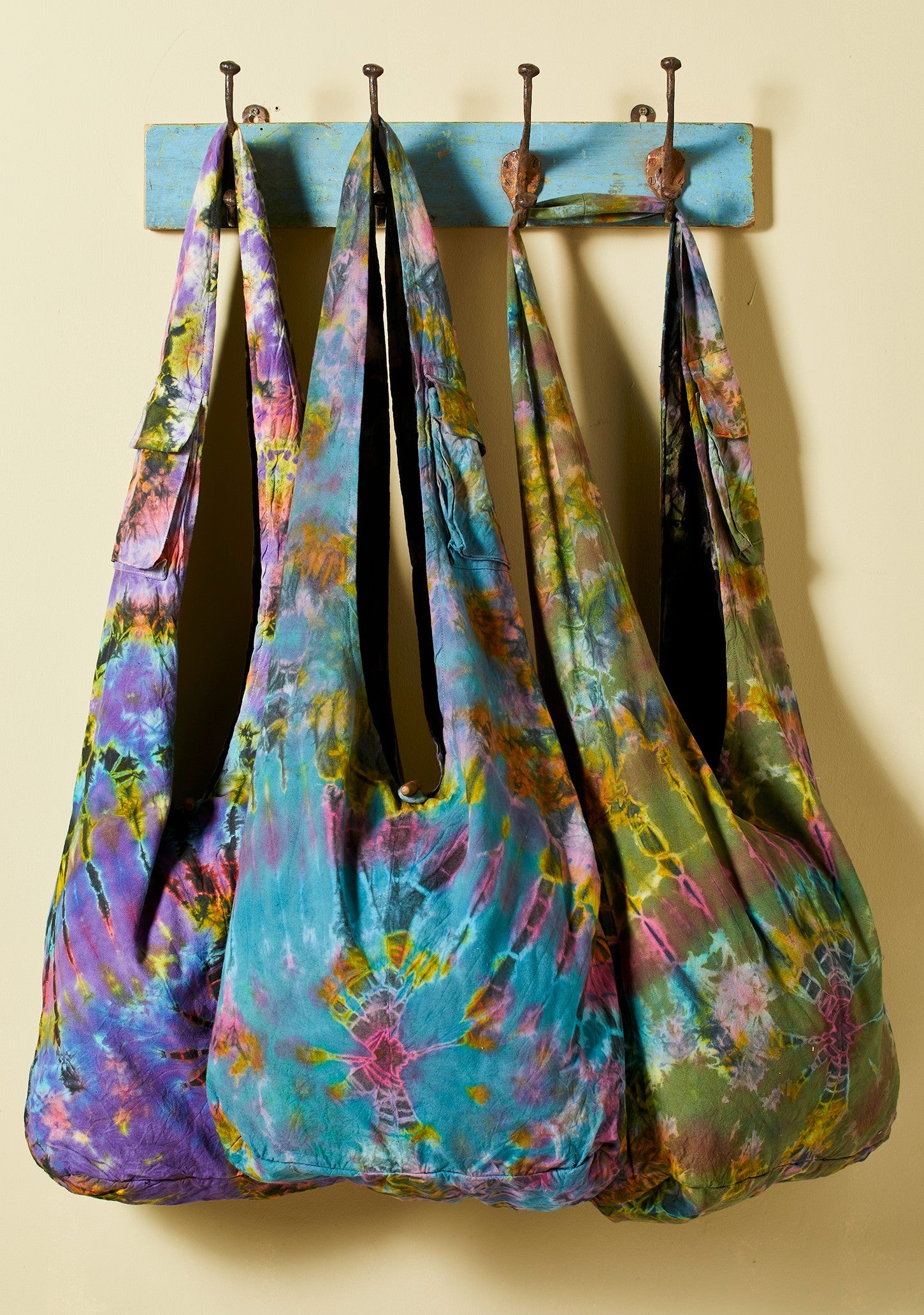 A cool Jogi, boho bag for colourful street or beachwear. It's easy to pack, easy to store and washable for multiple eco friendly reuses. Recyclable fabric. The bag has a velcro close phone pocket on the long handle. Given the authentic handmade nature of this item, designs and colours may vary slightly.