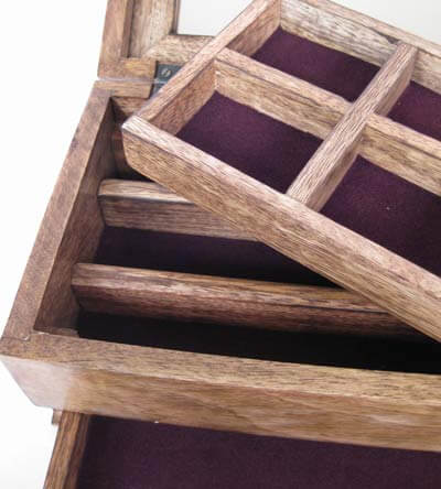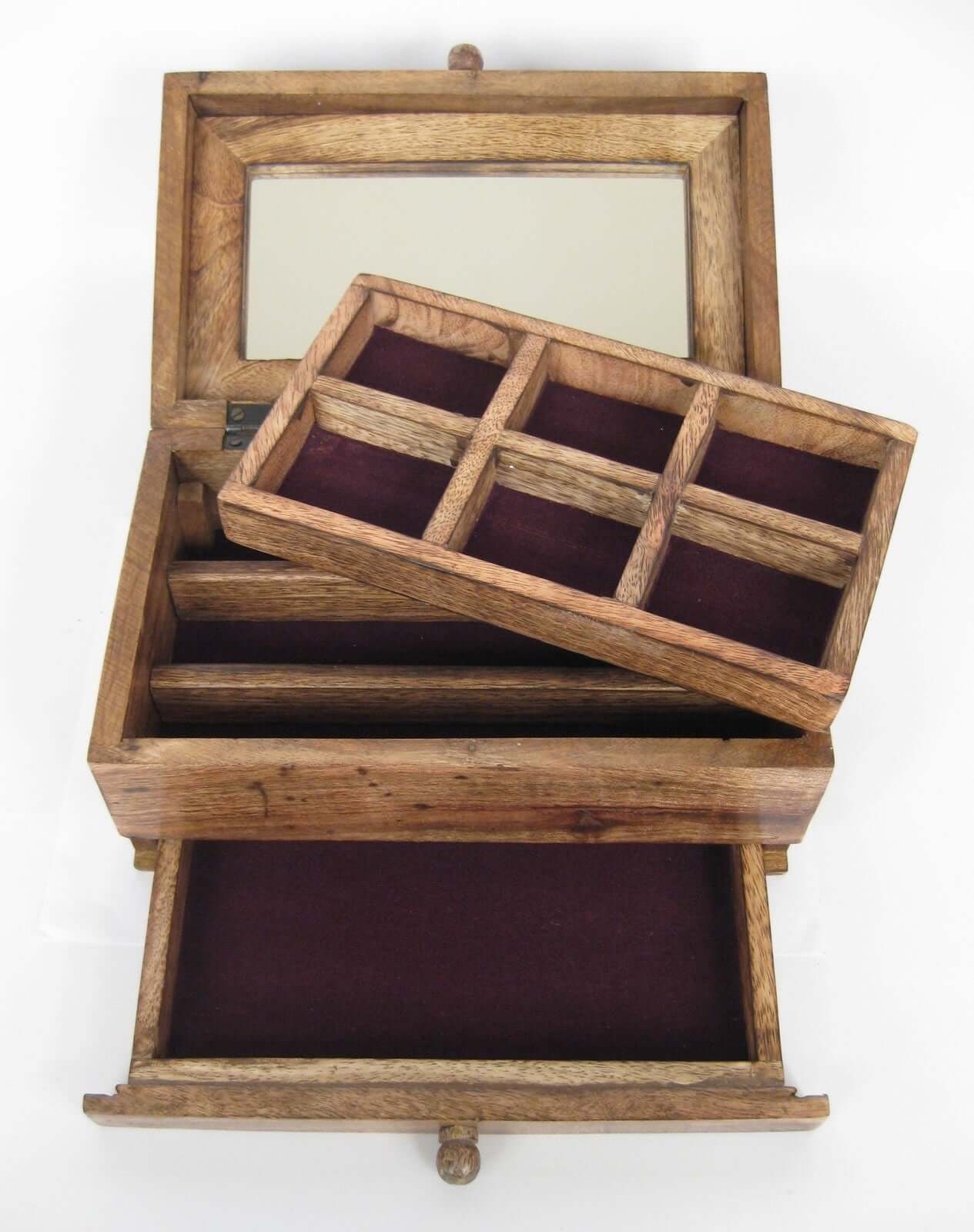 An attractive Jewellery/Trinket/Vanity Box made from solid mango wood. Superbly hand carved with a hand polished finish.