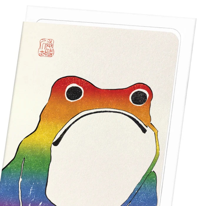 A contemporary Rainbow adaptation of a woodblock print from 1814 by Matsumoto Hoji. The Japanese word for frog is “kaeru”, which can also mean “to return”. The frog is considered to bring good luck, representing good things returning.A6 size (148mm x 105mm)