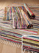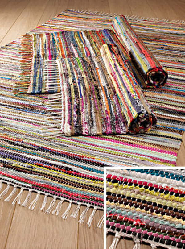 An Indian classic and a consistent best-seller, predominantly made from recycled cotton with some other mixed recycled fabrics. The GoodWeave label on this rug gives the best assurance that no child labour was used in the making of your rug.