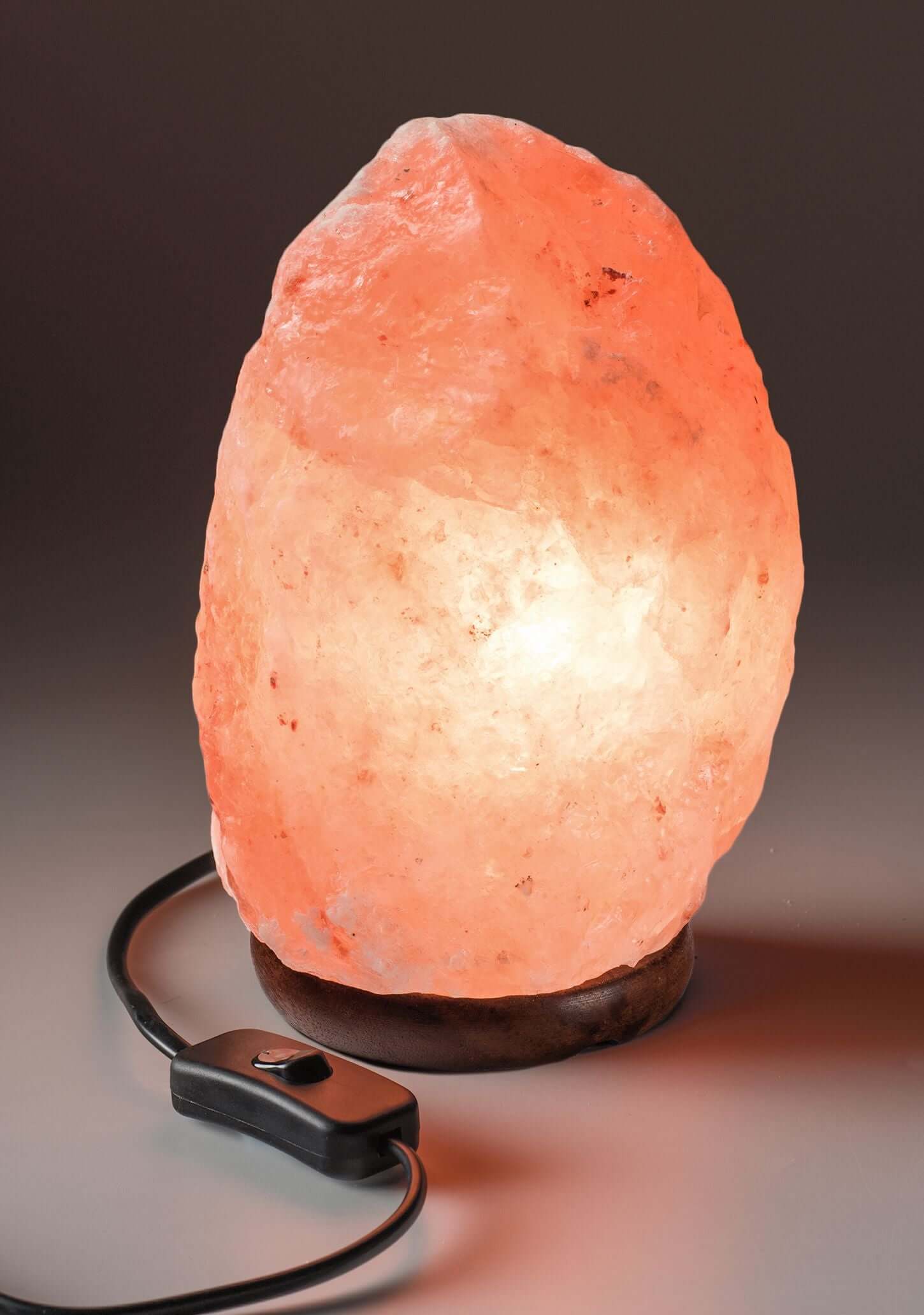 Hand made from solid blocks of Natural Himalayan rock salt with a wooden base. Salt lamps are believed by some to have positive therapeutic health and well-being qualities. When plugged in they give the room a wonderful soft warm glow.