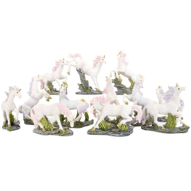 Set Of 12 Unicorn Ornaments On Tiered Fantasy Display