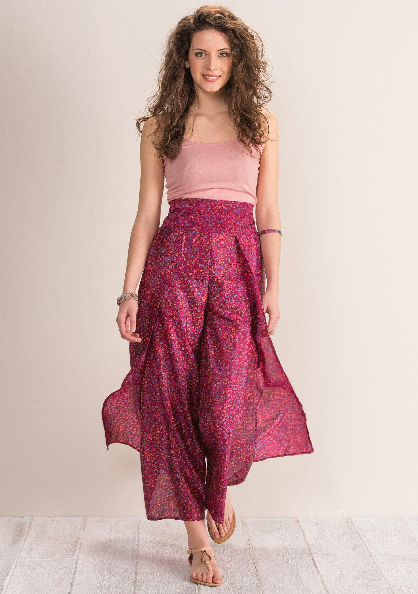 Indulge in the luxurious comfort of these recycled silk sari tie wrap trousers. The elasticated waist adds an extra level of coziness. Please note that each pair is truly unique, as they are made from recycled saris, and the colors and patterns will vary. However, if you have specific preferences, feel free to email us.