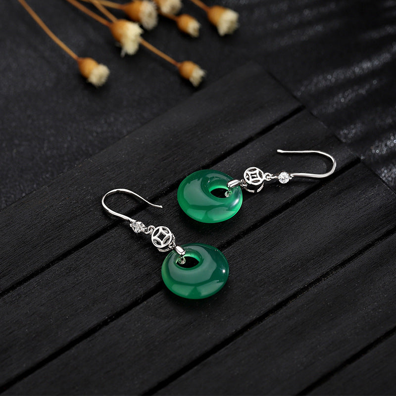Silver Jade Donut Earrings