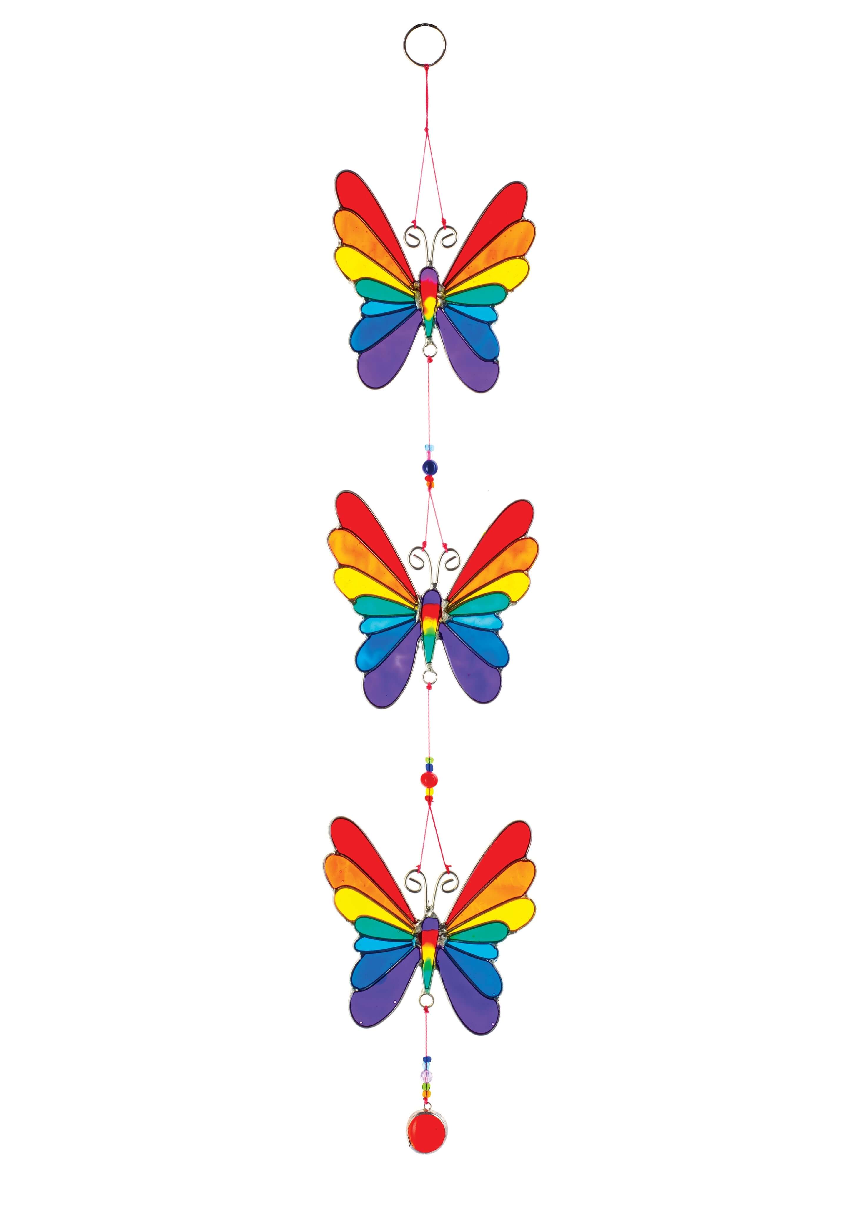 String of 3 Rainbow Butterflies Resin Sun Catcher