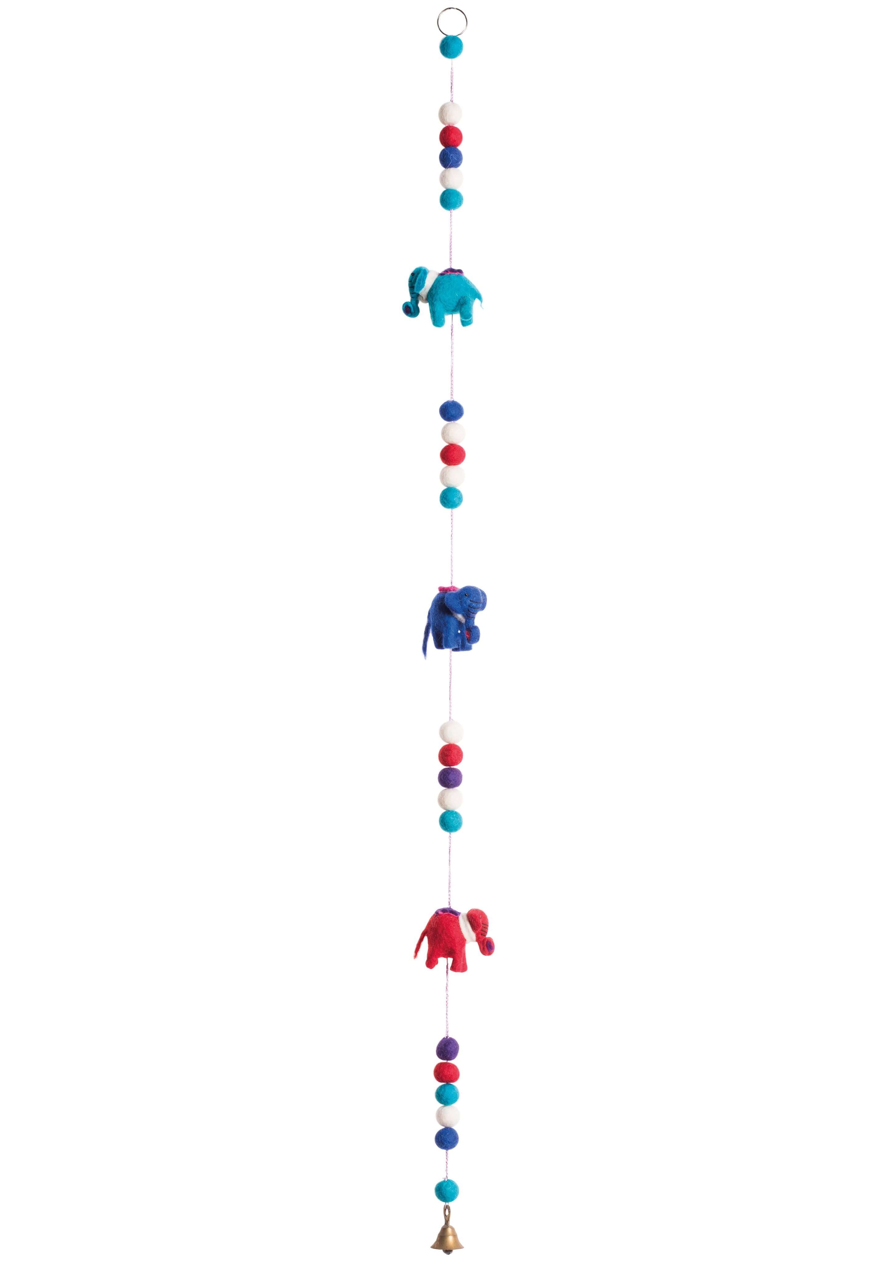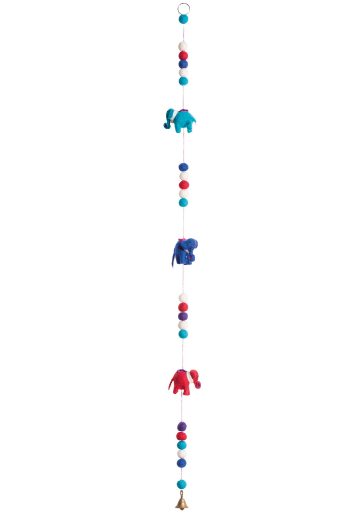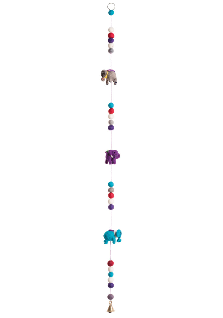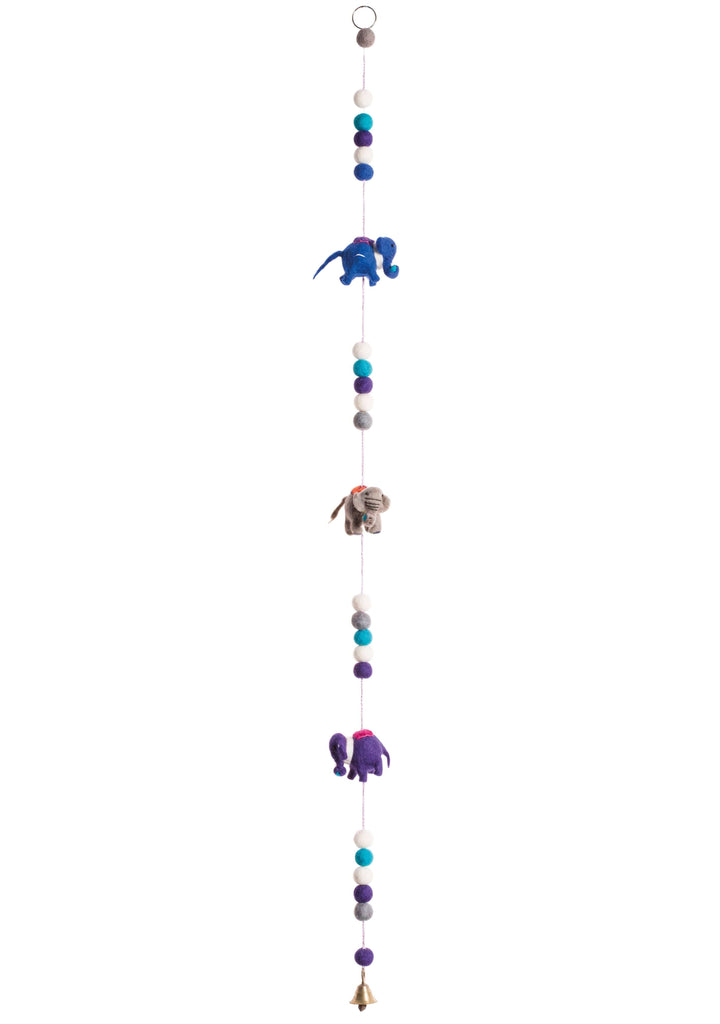 Fabulous and quirky string of felt elephants, made using a traditional needle felting method. The wool is entirely handmade from sheep's wool in rural Nepalese villages.